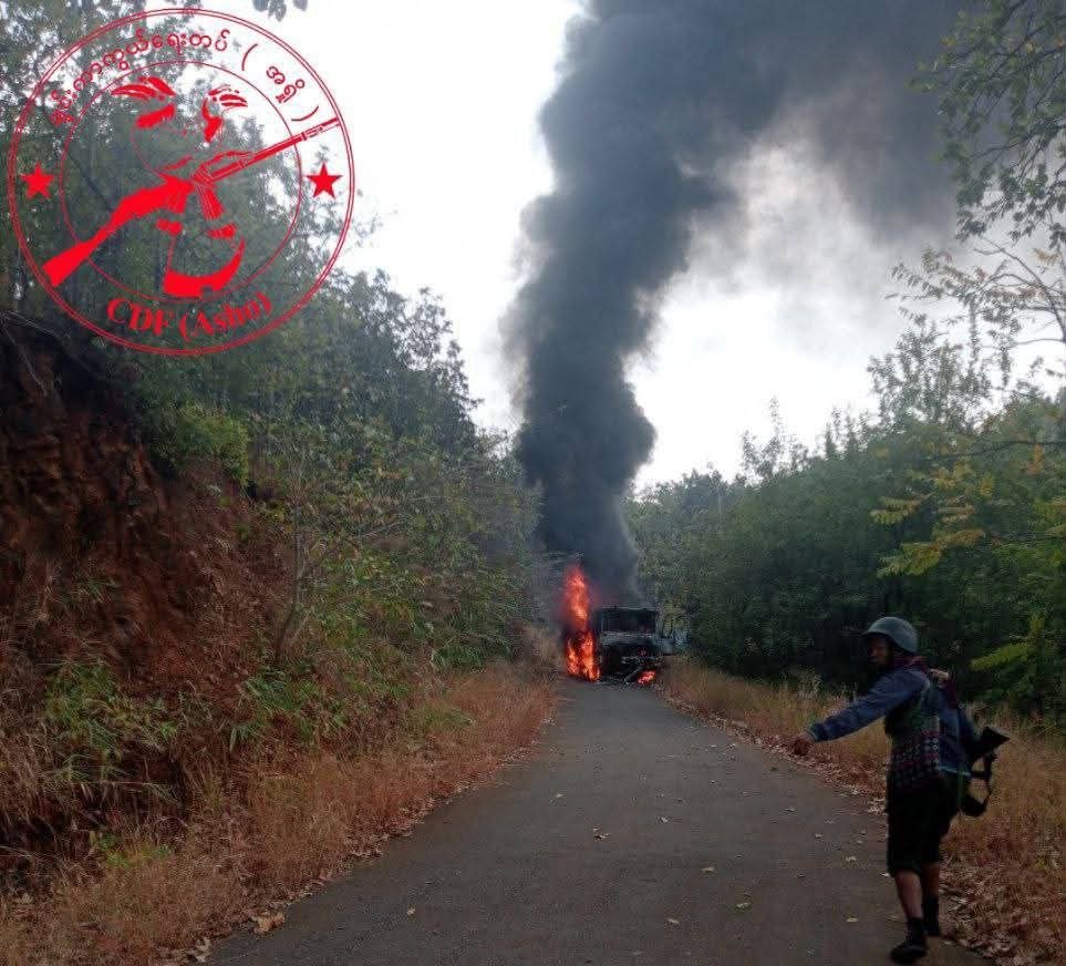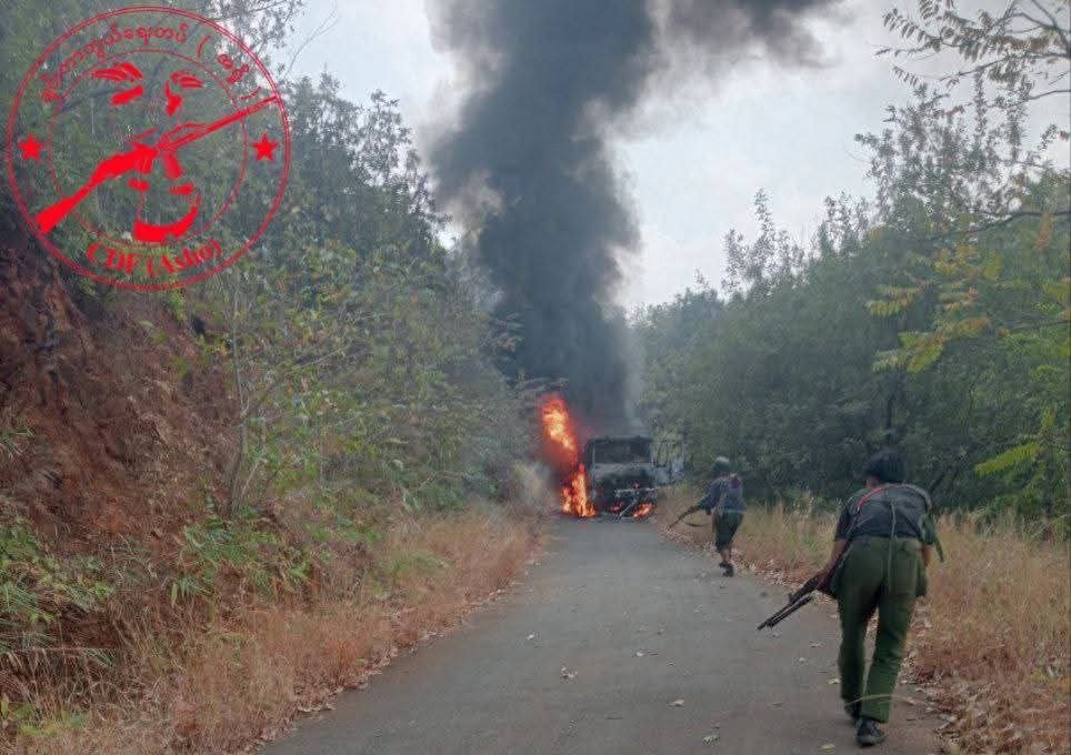 အဲဒီတပ်က လက်နက်ခဲယမ်းတွေတင်ဆောင်ဆုတ်ခွာလာတဲ့စစ်ကားလေးစီးကို ဖေဖော်ဝါရီလ ၂၂ ရက်နေ့၊နေ့လည်က ပျဥ်းဝစစ်ဆေးရေးဂိတ်အနောက်ဘက်၊ နတ်ရေကန်လမ်းဟောင်းမှာ ဖြတ်တောက်တိုက်လိုက်ခဲ့တာလို့ ဆိုပါတယ်။