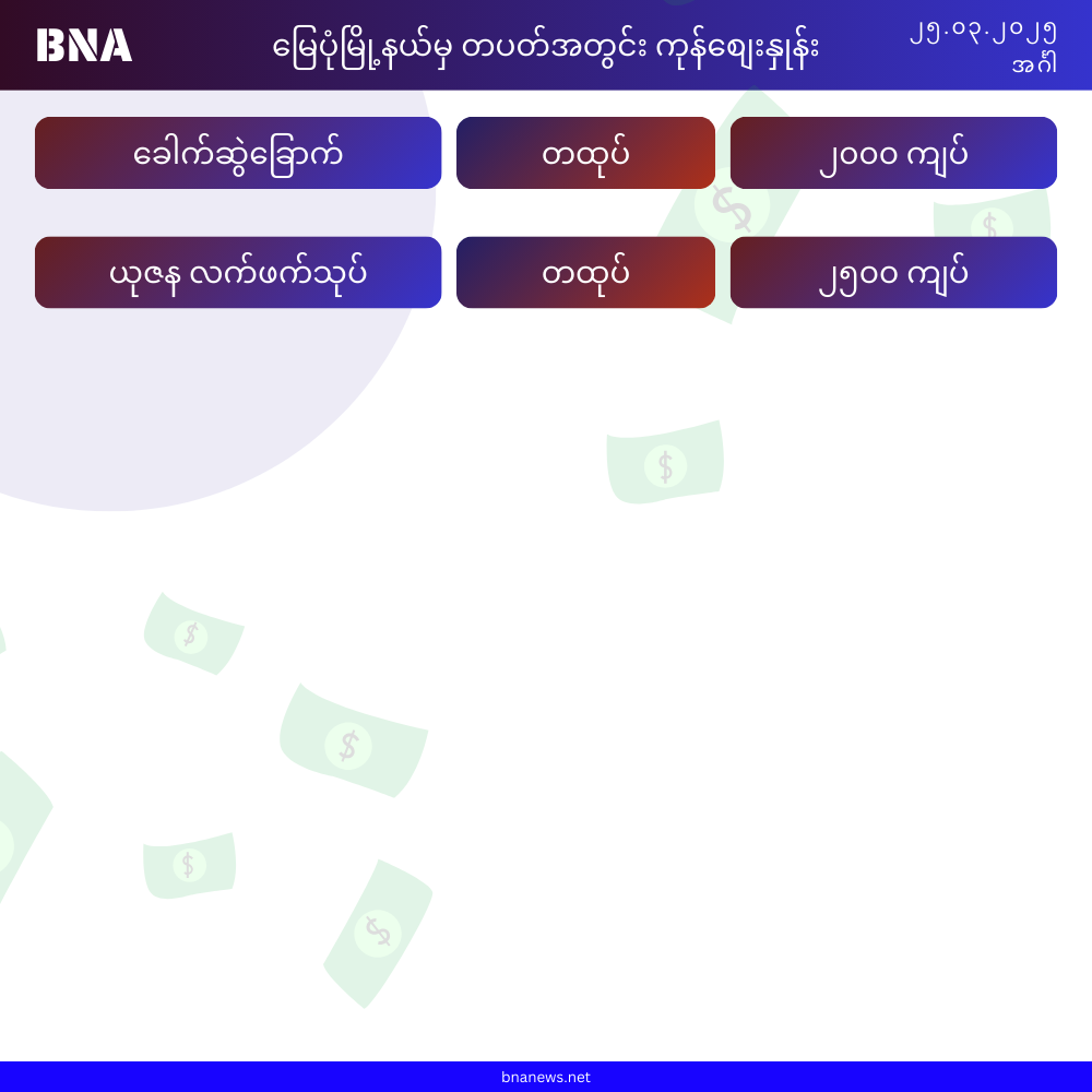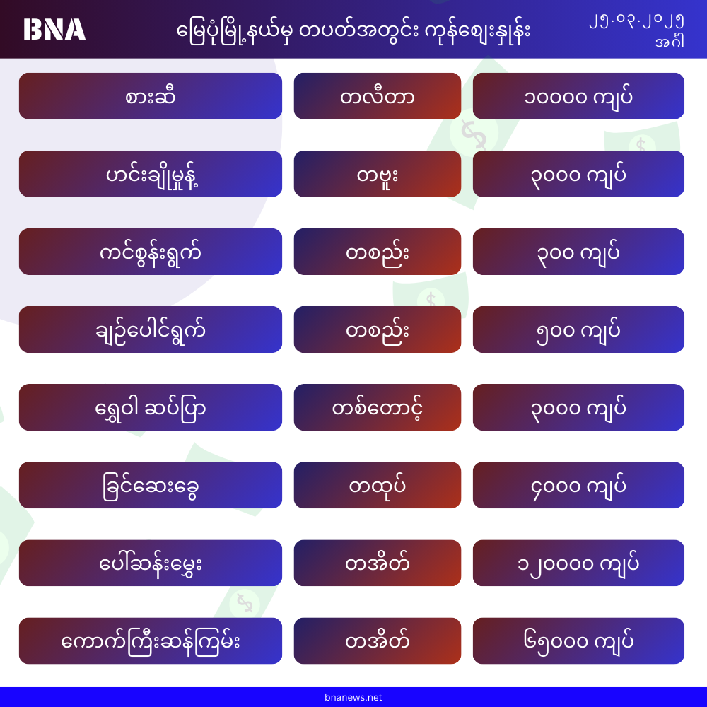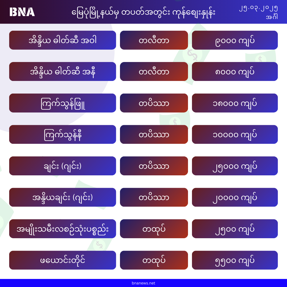 မြေပုံမြို့နယ်မှ ကုန်စျေးနှုန်းတချို့
