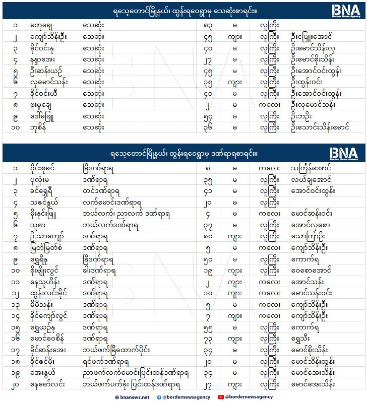 အဲဒီသေဆုံး၊ ဒဏ်ရာရစာရင်းကို ဖော်ပြလိုက်ပါတယ်။