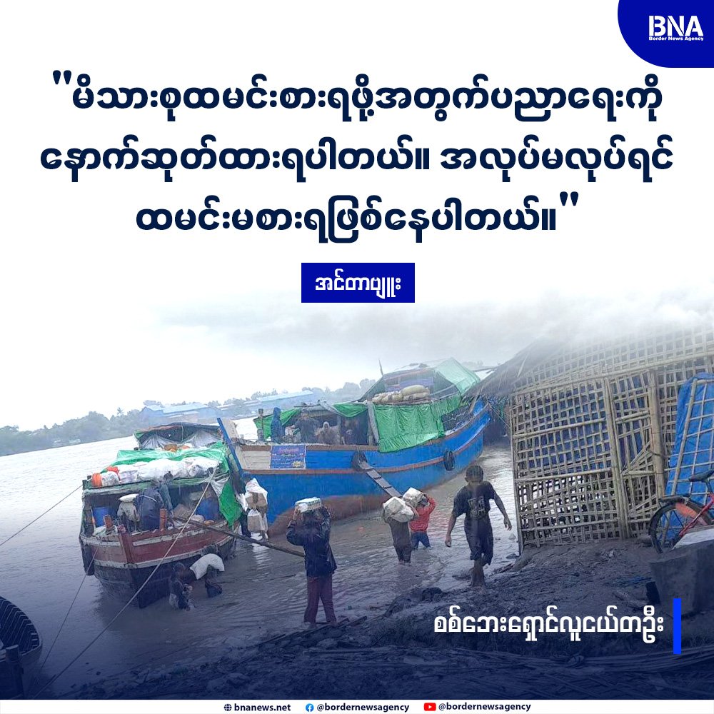 “အခုက အိန္ဒိယဆိပ်ကမ်းမှာ အလုပ်လုပ်နေရပါတယ်။ အိန္ဒိယကလာတဲ့ပစ္စည်းတွေကို ရောင်းပါတယ်။ဒီနားမှာရှိတဲ့စစ်ဘေးရှောင်တွေကအားလုံးကတော့ ဒီအလုပ်တခုကိုပဲ မှီခိုနေရတာပါ။ဒီအလု ပ်တခုနဲ့ ထမင်းစားနေတာပါ။”