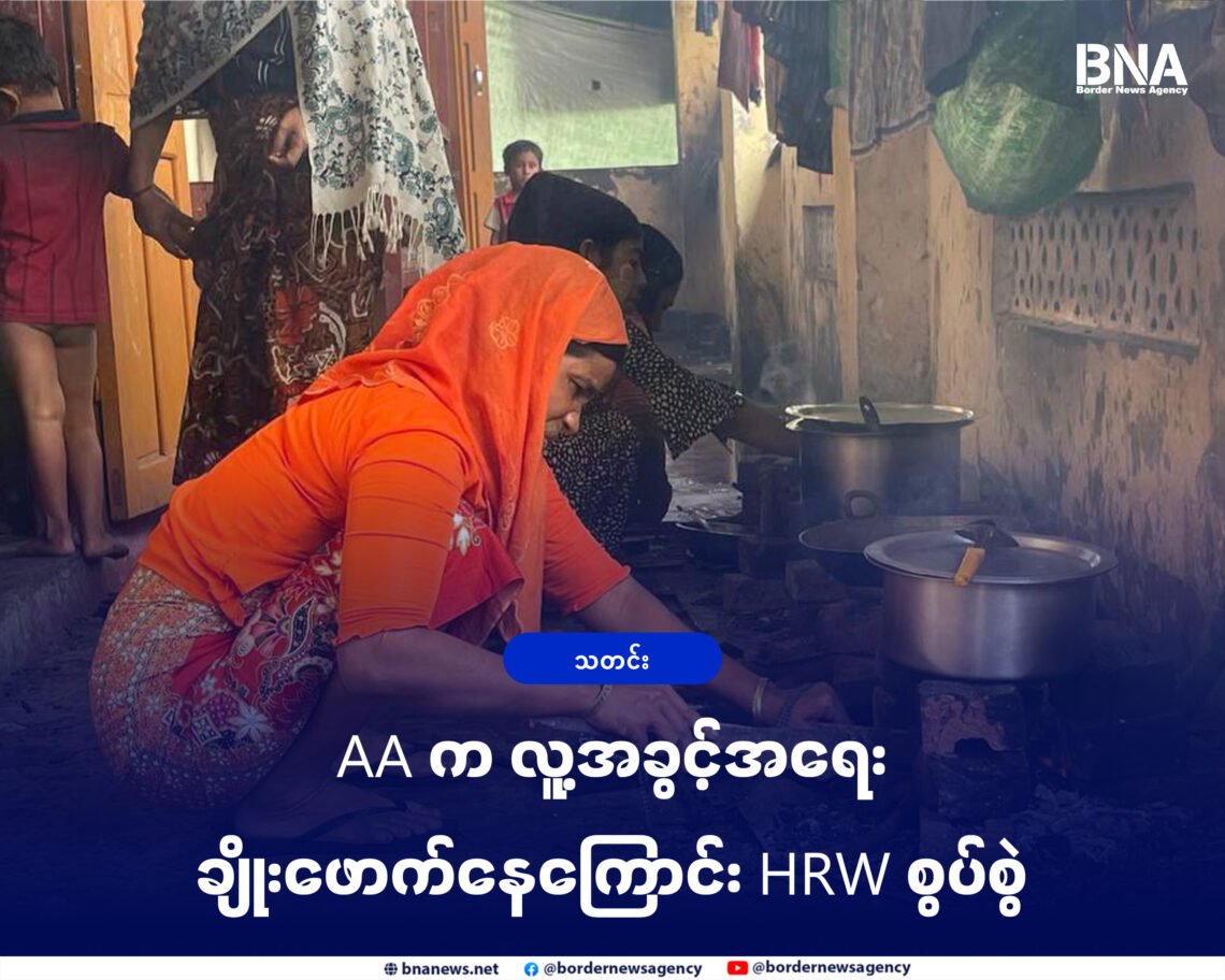 အာရက္ခတပ်တော် (AA) က ရိုဟင်ဂျာတွေအပေါ် ပြင်းထန်တဲ့ကန့်သတ်ချုပ်ချယ်မှုတွေနဲ့ ဆိုးရွားတဲ့လူ့အခွင့်အရေးချိုးဖောက်မှုတွေကိုကျူးလွန်နေတယ်လို့ လူ့အခွင့်အရေးစောင့်ကြည့်လေ့လာရေးအဖွဲ့ (HRW)က ဇူလိုင်လ ၂၉ ရက် ဒီနေ့ ထုတ်ပြန်ပါတယ်။