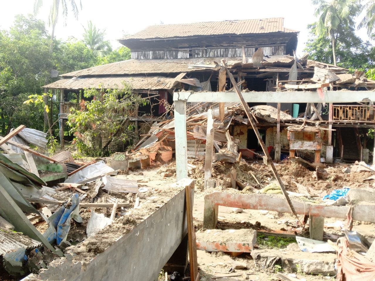 အဲဒီလိုလေကြောင်းတိုက်ခိုက်လို့စာသင်ကျောင်းဆောင်တခုလုံးပျက်စီးသွားခဲ့သလို ဘုန်းကြီးကျောင်းဓမ္မာရုံလည်းပျက်စီးသွားခဲ့ပါတယ်။