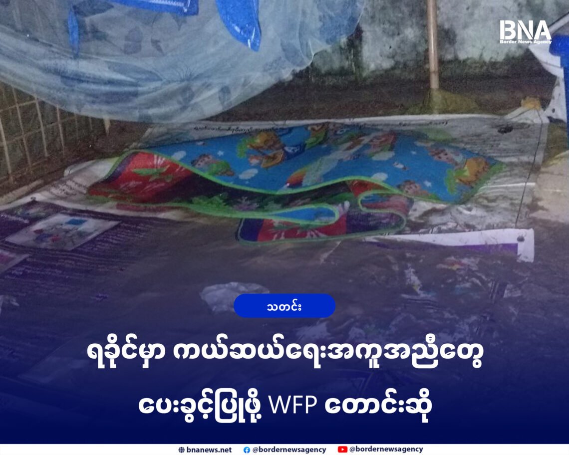ရခိုင်မှာ လူသားချင်းစာနာထောက်ထားမှုဆိုင်ရာအကူအညီတွေ ပိုမိုပေးအပ်နိုင်ရန် ကမ္ဘာ့စားနပ်ရိက္ခာအစီအစဥ် (WFP)က သြဂုတ်လ ၁၂ ရက်၊ မနေ့ကအရေးတကြီးတိုက်တွန်းတောင်းဆိုလို က်ပါတယ်။