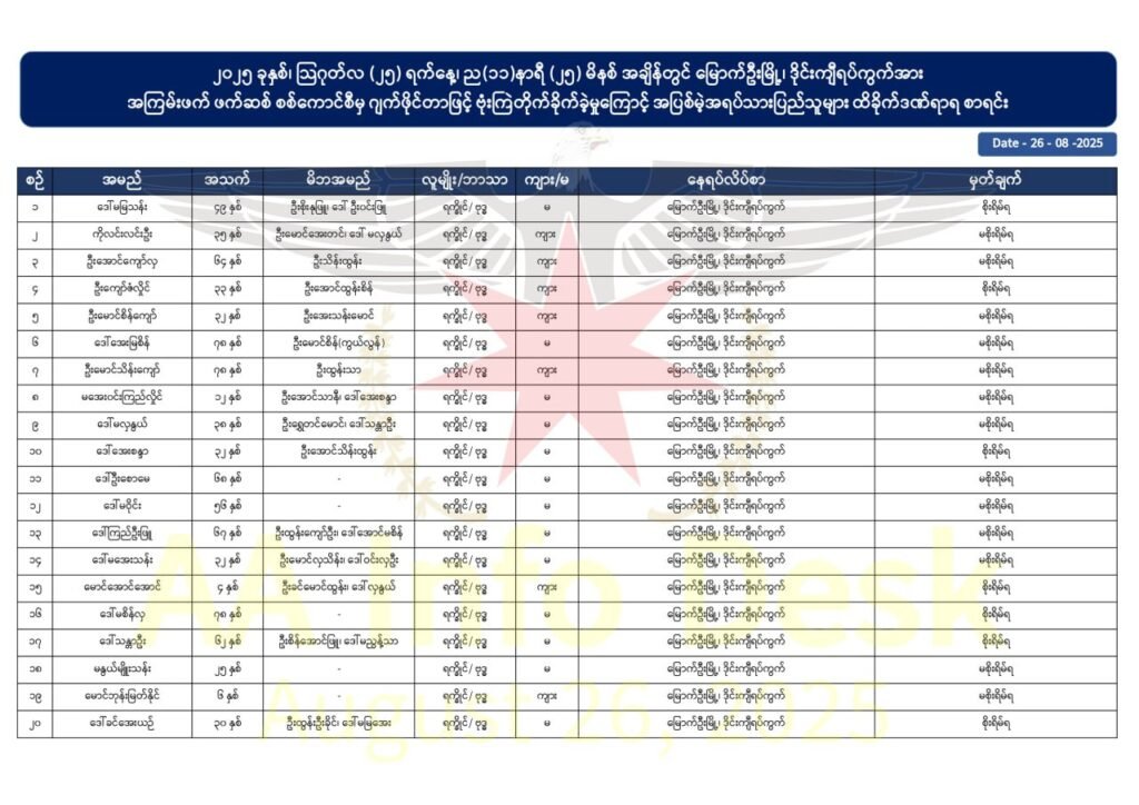 မြောက်ဦး၊ သြဂုတ် ၂၆။