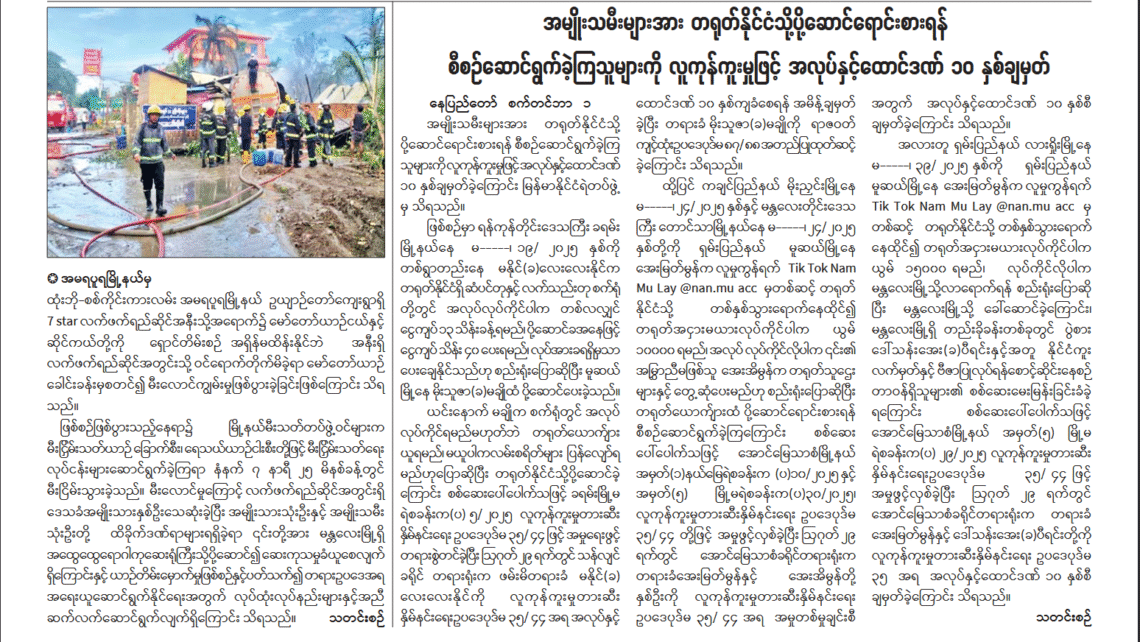 ဒုတိယဖြစ်ရပ်ကတော့ ကချင်ပြည်၊မိုးညှင်းမြို့နယ်နဲ့ မန္တလေးတိုင်း၊တောင်သာမြို့နယ်က ၂၄ နှစ်အရွယ်အမျိုးသ မီးငယ်နှစ်ဦးကို မူဆယ်မှာနေထိုင်တဲ့ အေးမြတ်မွန ဆိုတဲ့အမျိုးသမီးက Tik Tok မှတဆင့် တရုတ်အငှားမယားအဖြစ်လုပ်ကိုင်လိုရင် ယွမ်ငွေတသောင်းရမှာဖြစ်ပြီး သူ့ရဲ့အမွှာညီမဖြစ်သူ အေးအိမွန်က တရုတ်သူဌေးတွေနဲ့ တွေ့ဆုံပေးမယ်လို့ပြောဆိုစည်းရုံးခဲ့တယ်လို့ ဆိုပါတယ်။