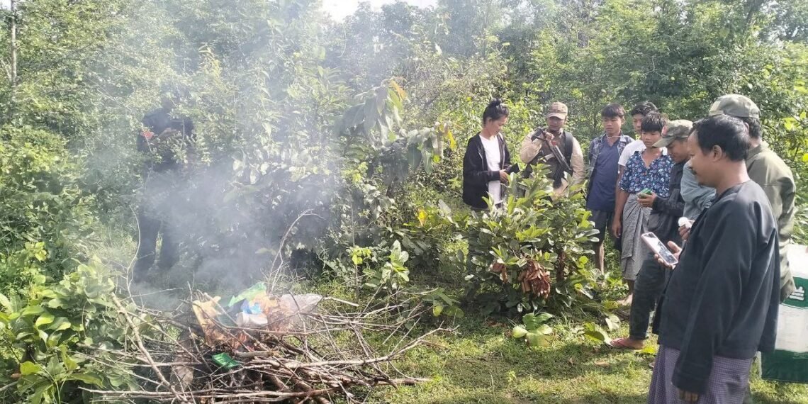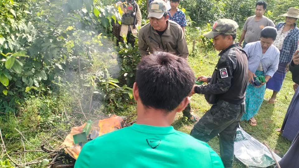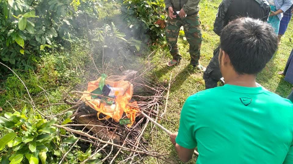 NUG အစိုးရမြို့နယ်တရားစီရင်ရေးမှ အမှုစီရင်ပြီးတဲ့ဘိန်းဖြူဆပ်ပြာခွက် ၉ ခွက်၊ WY စိတ်ကြွမူးယစ်ဆေးပြား ၂၂၄၉ ပြားနဲ့ဆေးသုံးစွဲရာမှာအသုံးပြုတဲ့ ဆက်စပ်ပစ္စည်းတွေကို မြို့နယ်တာ ဝန်ရှိသူတွေနဲ့အများပြည်သူရှေ့မှာ ဒု တိယအကြိမ် မီးရှို့ဖျက်ဆီးခဲ့တယ်လို့ ဆိုပါတယ်။
