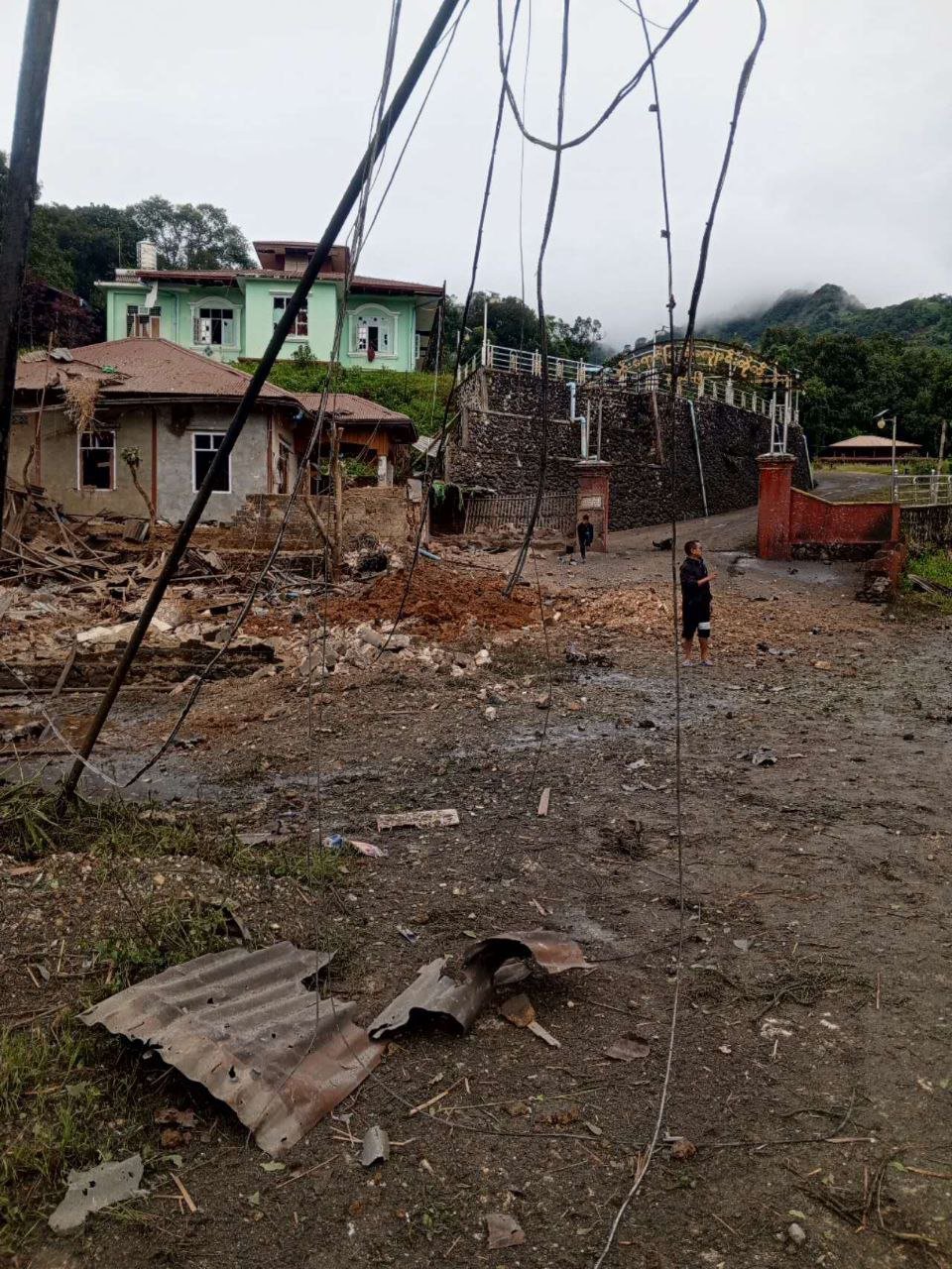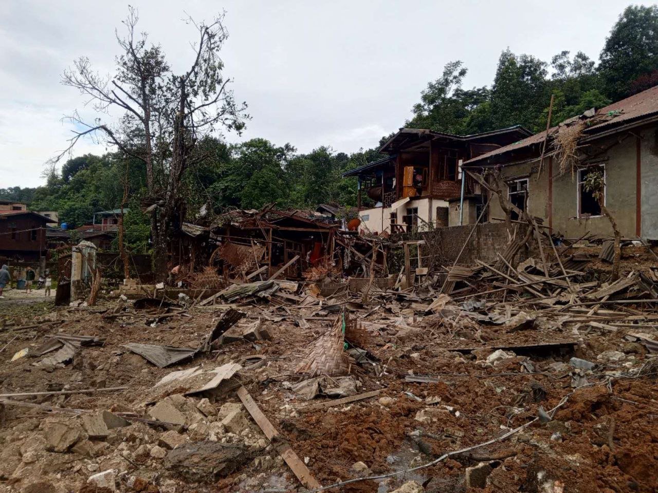 အဲဒီလိုပြည်သူလူထုကို တိုက်ရိုက်ဦးတ ည် ဗုံးကြဲချခဲ့တဲ့အတွက် ဗုံးစထိမှန်ပြီး အမျိုးသမီးတဦး ထိခိုက်ဒဏ်ရာရရှိခဲ့ပြီးနေအိမ်ငါးလုံး၊ကားတစီးပါ ပျက်စီးသွားခဲ့ပါတယ်။