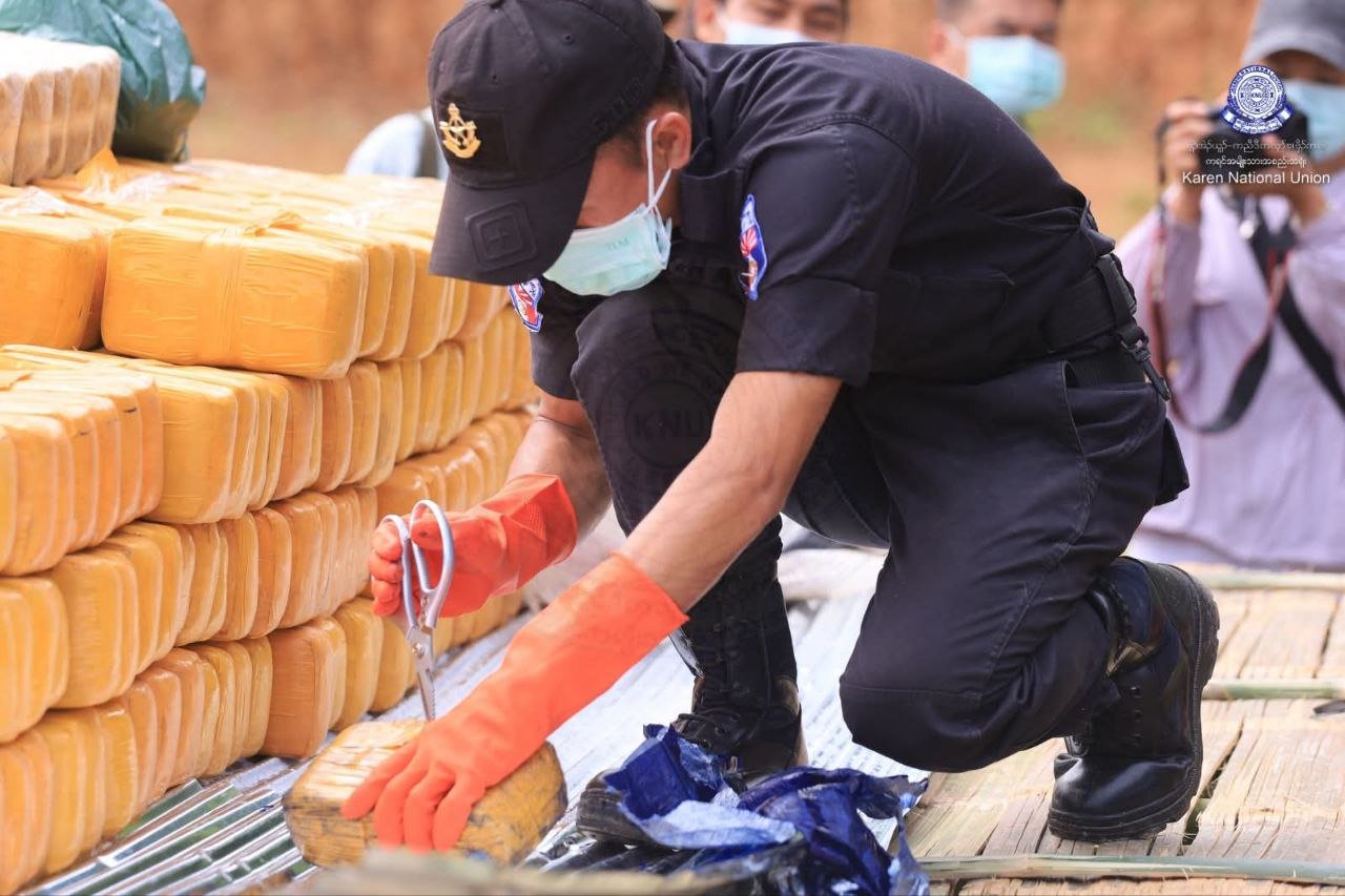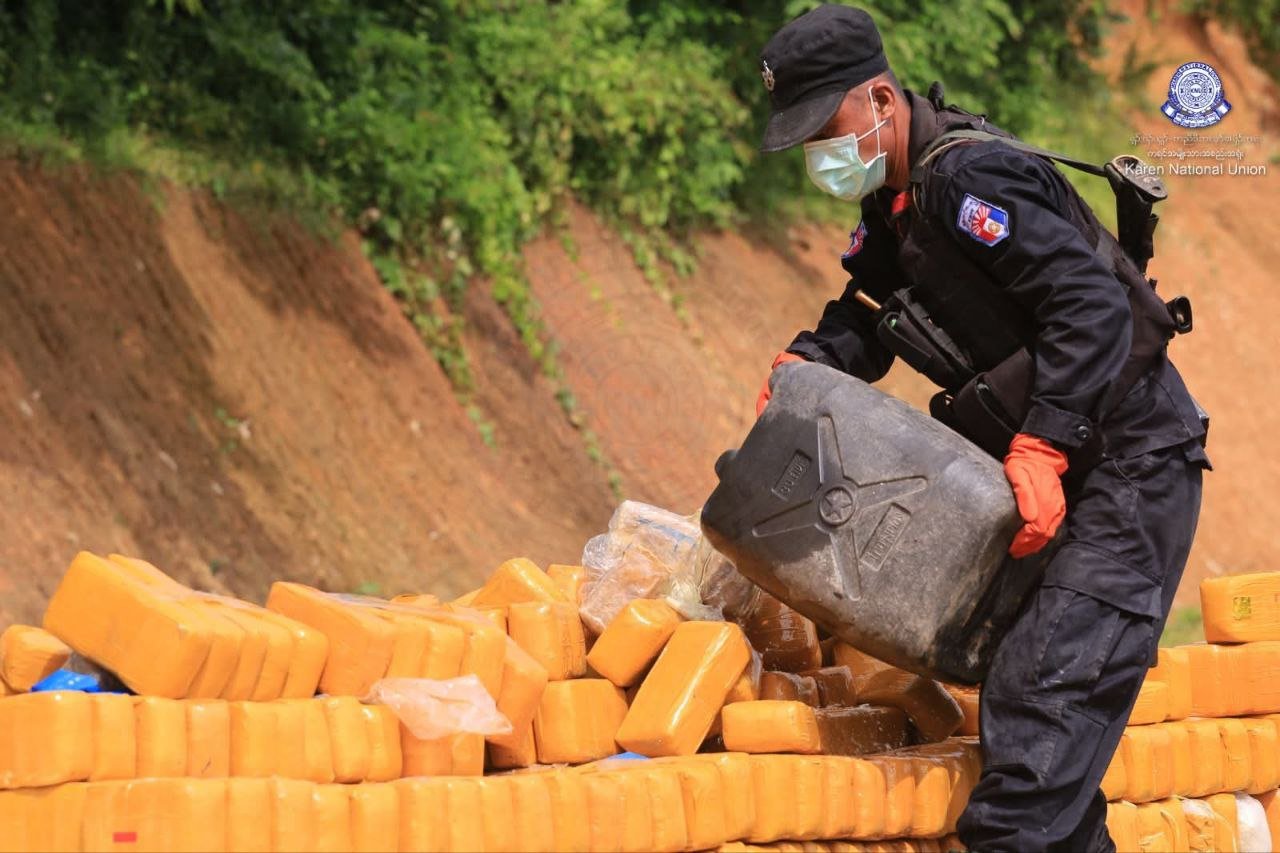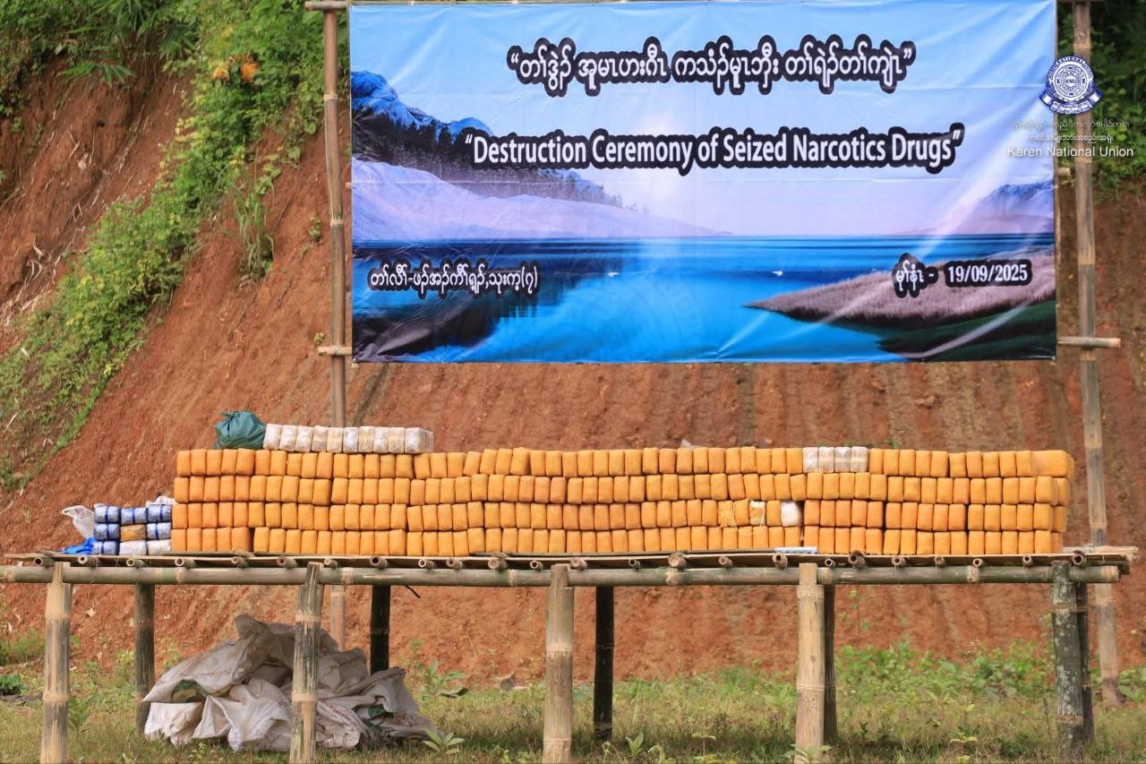 အဲဒီမူးယစ်ဆေးဝါးတွေကို ကရင်အ မျိုးသားအစည်းအရုံးရဲ့မူးယစ်ဆေးဝါးတိုက်ဖျက်ရေးနဲ့လူကုန်ကူးမှုပပျောက်ရေးကော်မတီနဲ့ကရင်အမျိုးသားရဲတ ပ်ဖွဲ့(KNPF)က စက်တင်ဘာလ ၁၉ ရ က်၊ဒီနေ့ ဖားအံခရိုင်၊တပ်မဟာ ၇ ဌာန ချုပ်မှာ မီးရှို့ဖျက်ဆီးခဲ့တယ်လို့ဆိုပါတယ်။