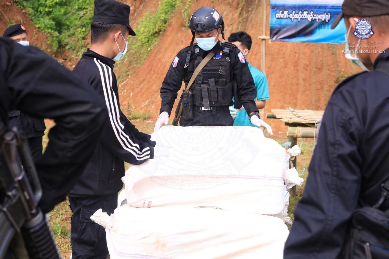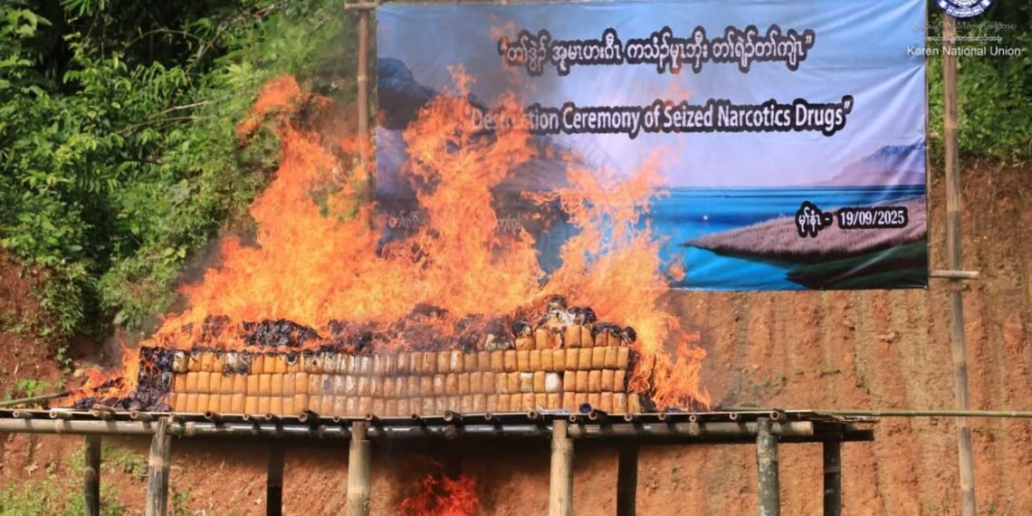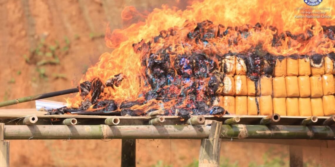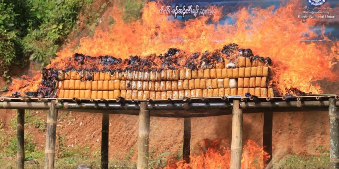 KNU ဖမ်းမိထားတဲ့မူးယစ်ဆေးဝါးတွေကိုမီးရှို့ဖျက်ဆီး