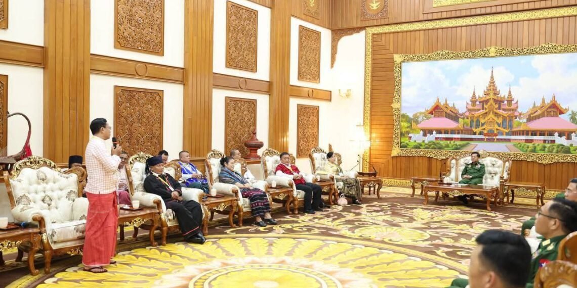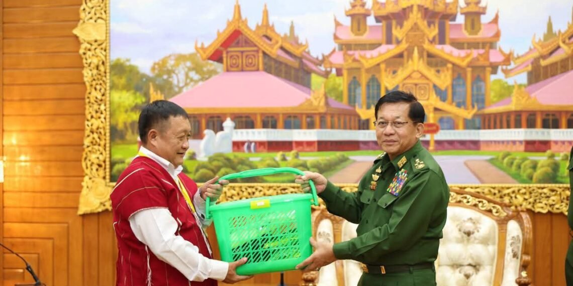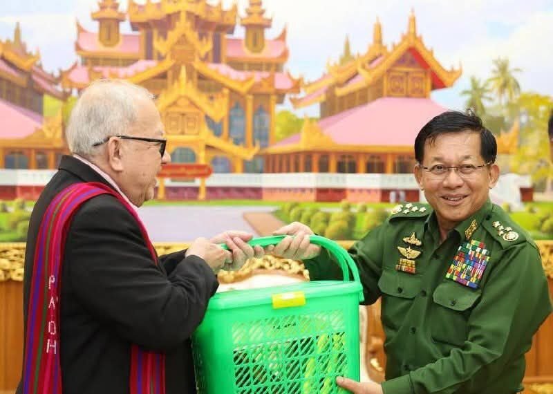 နေပြည်တော်ရှိ ဗန္ဒုလခန်းမမှာ အောက်တိုဘာလ ၁၇ ရက်၊ ဒီနေ့ အာဏာသိမ်းစစ်ခေါင်းဆောင် ဗိုလ်ချုပ်မှူးကြီးမင်းအောင်လှိုင်က တိုင်းရင်းသားလက်နက်ကိုင် ကိုယ်စားလှယ်အဖွဲ့တွေကို ပေးခဲ့တာပါ။