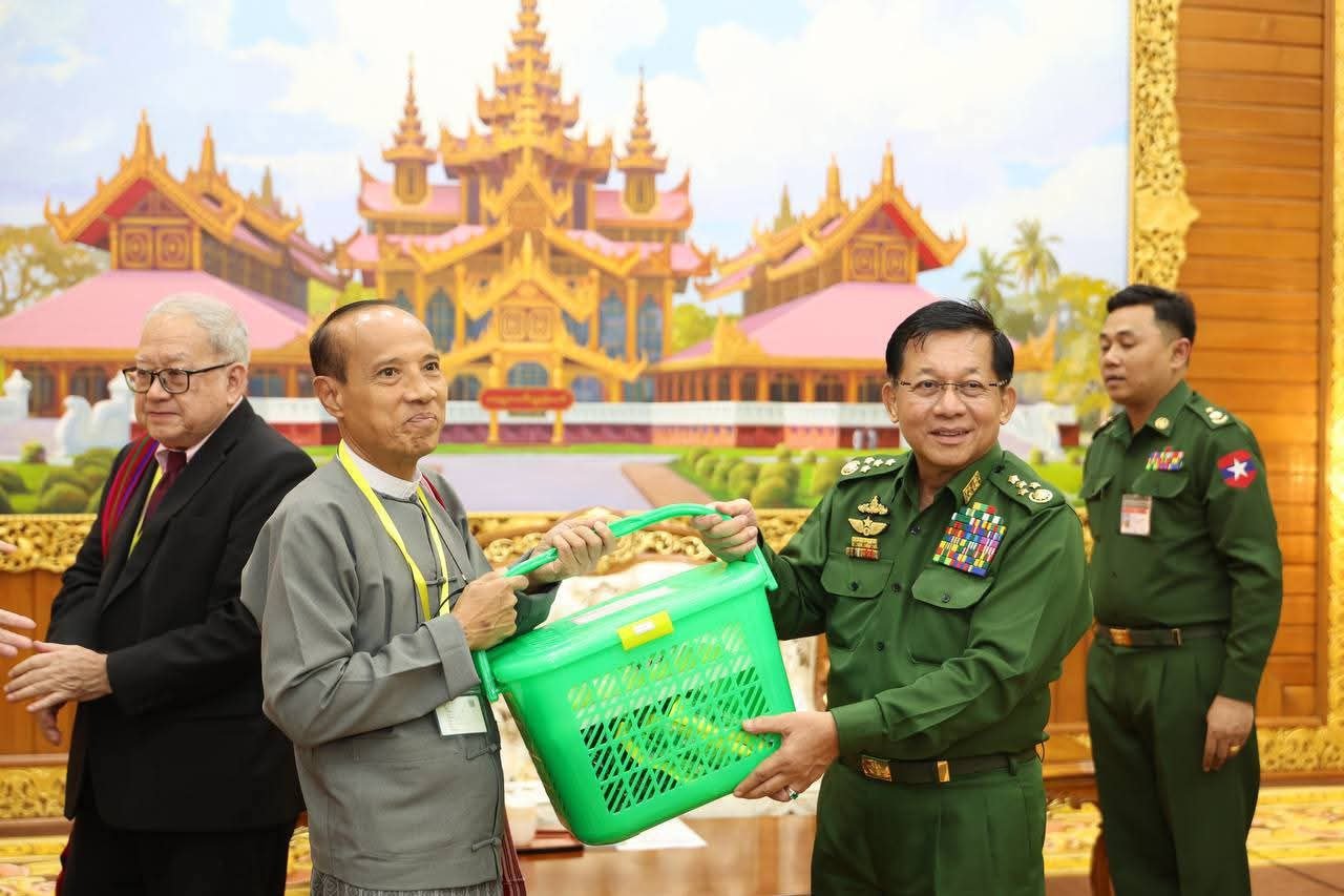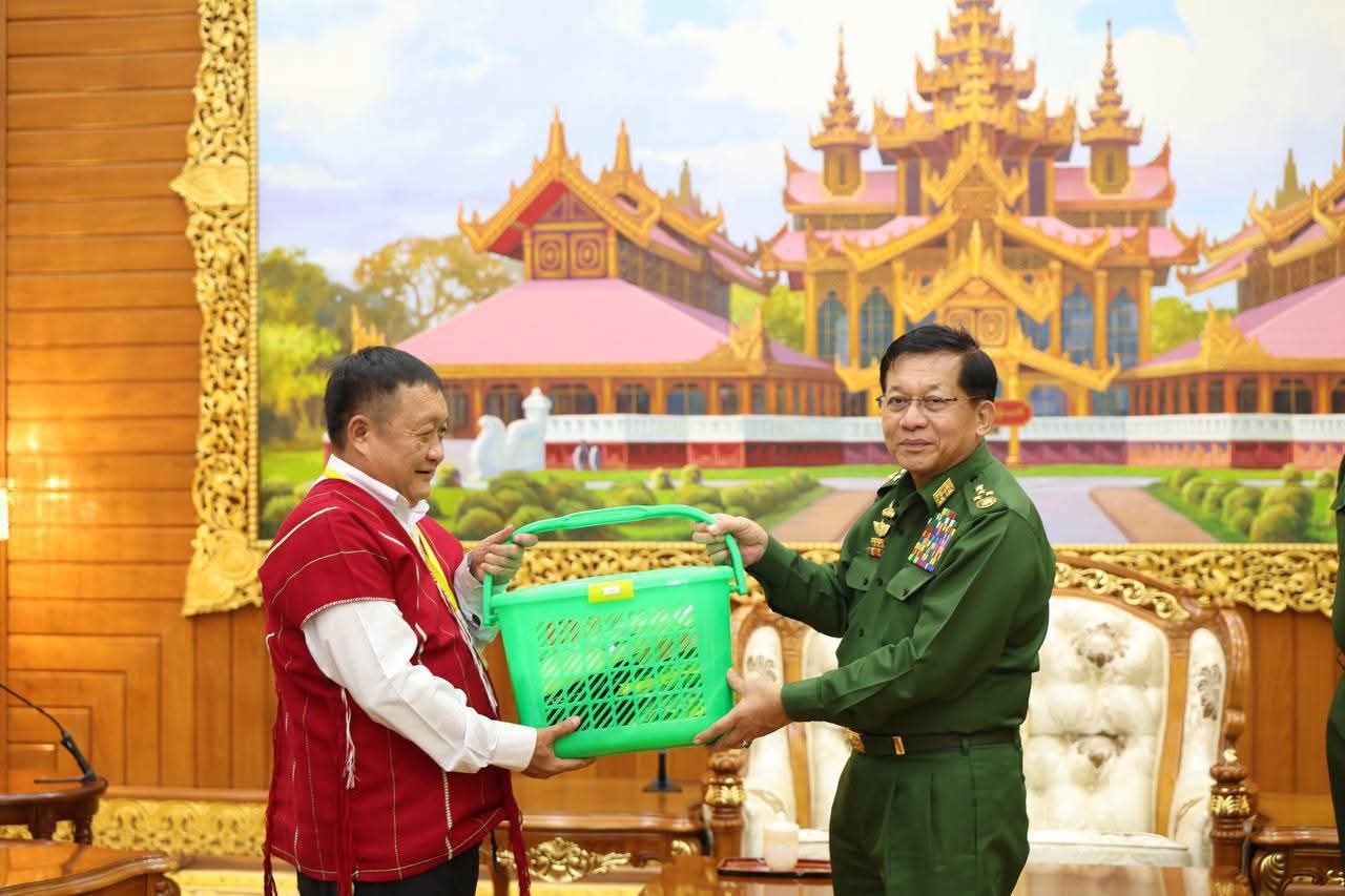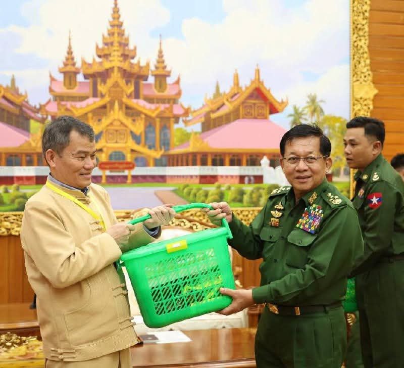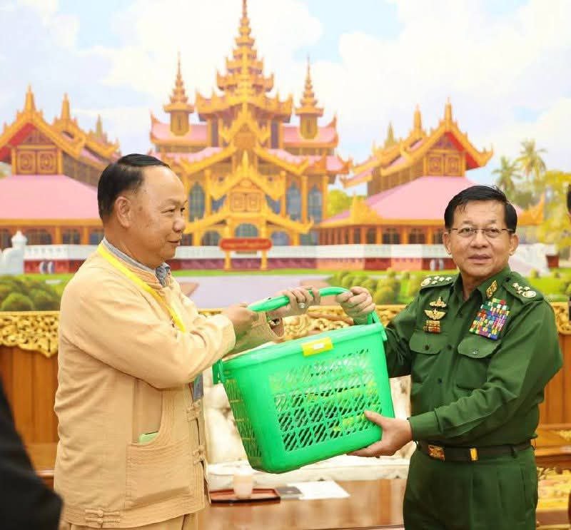 နေပြည်တော်ရှိ ဗန္ဒုလခန်းမမှာ အောက်တိုဘာလ ၁၇ ရက်၊ ဒီနေ့ အာဏာသိမ်းစစ်ခေါင်းဆောင် ဗိုလ်ချုပ်မှူးကြီးမင်းအောင်လှိုင်က တိုင်းရင်းသားလက်နက်ကိုင် ကိုယ်စားလှယ်အဖွဲ့တွေကို ပေးခဲ့တာပါ။