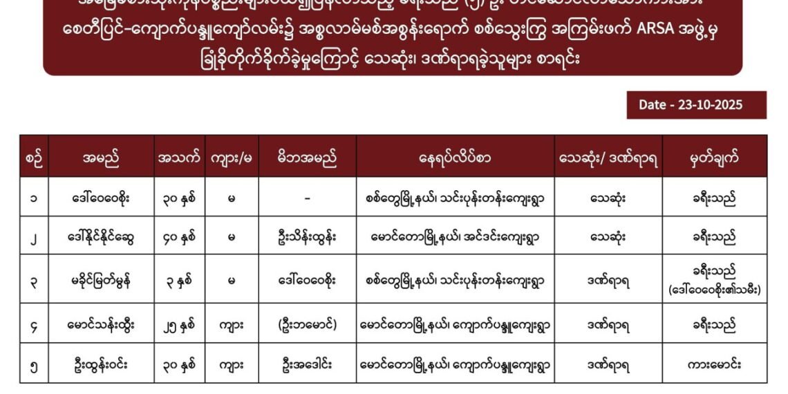 အဲဒီမောင်တောမြို့နယ်၊ ကျောက်ပန္ဒူကျေးရွာနေ အသက်သုံးဆယ်အရွယ်မဝေဝေစိုးနဲ့ အသက်လေးဆယ်အရွယ်မနိုင်နိုင်ဆွေကို အကြမ်းဖက်သမားတွေပစ်သတ်သွားကြတာပါ။