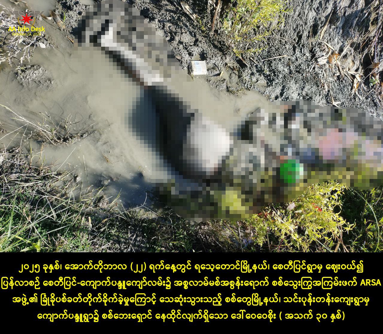 အာရက္ခတပ်တော်(AA)ထိန်းချုပ်ထားတဲ့မောင်တောမြို့နယ်၊ မြိုယုရွာအရှေ့ဘက်တံတားအနီးမှာ အောက်တိုဘာလ ၂၂ ရက်မနေ့က ရိုဟင်ဂျာအမည်ခံလက်နက်ကိုင်အကြမ်းဖက်သမားတွေပစ်သတ်လို့အမျိုးသမီးနှစ်ဦးသေဆုံးပြီးနှစ်ဦးဒဏ်ရာရသွားတယ်လို့ အာရက္ခတပ်တော်က ထုတ်ပြန်ပါတယ်။