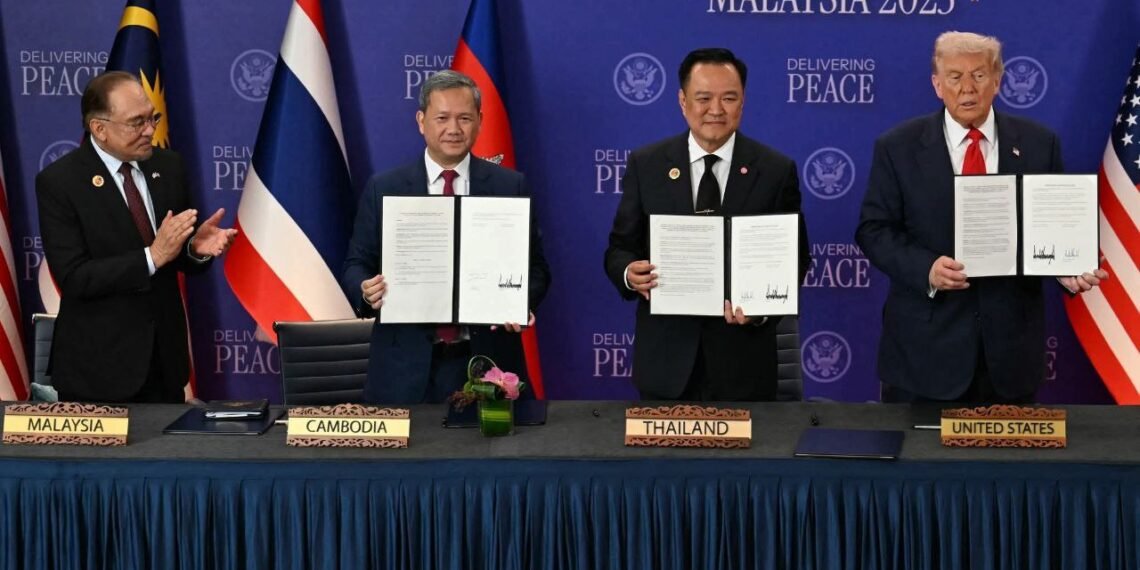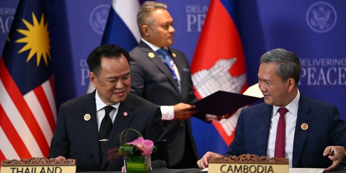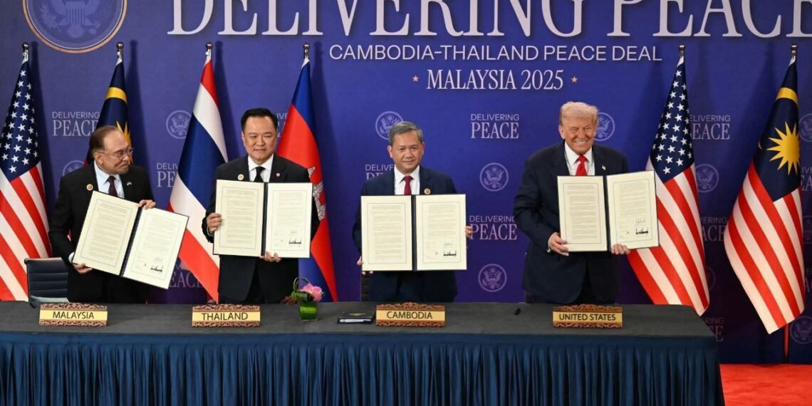 မလေးရှားနိုင်ငံ၊ ကွာလာလမ်ပူမြို့ရဲ့ ၄၇ ကြိမ်မြောက် အာဆီယံထပ်သီးအစည်းအဝေးမှာ ထိုင်းနဲ့ကမ္ဘောဒီးယား နှစ်နိုင်ငံငြိမ်းချမ်းရေး လက်မှတ်ရေးထိုးခဲ့ကြပါတယ်။
