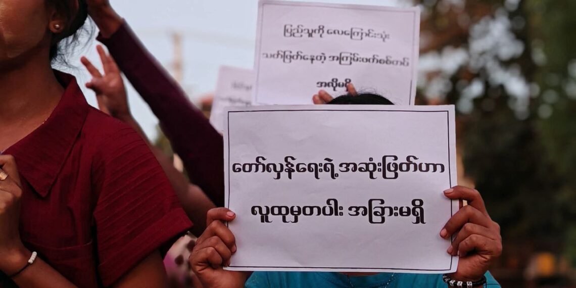 တော်လှန်ရေးရဲ့အဆုံးအဖြတ်ဟာ လူထုမှတပါးအခြာမရှိ၊ လူသတ်စစ်ကောင်စီအလိုမရှိ၊ ပြည်သူတွေကို လေကြောင်းတိုက်ခိုက်သတ်ဖြတ်နေတဲ့ စစ်တပ်အလိုမရှိစတဲ့ ဆောင်ပိုဒ်တွေနဲ့ဆန့်ကျင်သပိတ်မှောက်နေကြတာဖြစ်ပါတယ်။