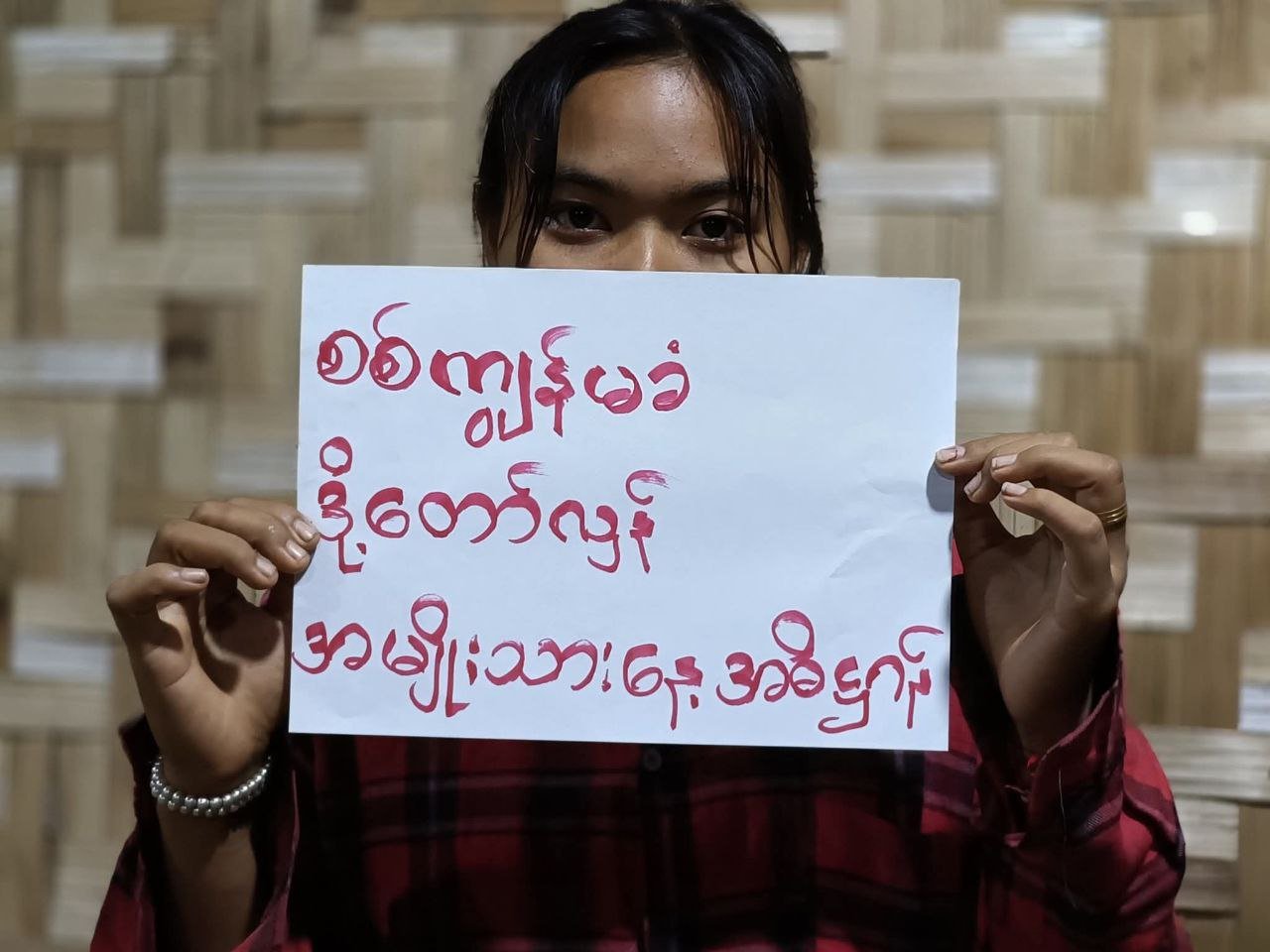 တော်လှန်ရေးရဲ့အဆုံးအဖြတ်ဟာ လူထုမှတပါးအခြာမရှိ၊ လူသတ်စစ်ကောင်စီအလိုမရှိ၊ ပြည်သူတွေကို လေကြောင်းတိုက်ခိုက်သတ်ဖြတ်နေတဲ့ စစ်တပ်အလိုမရှိစတဲ့ ဆောင်ပိုဒ်တွေနဲ့ဆန့်ကျင်သပိတ်မှောက်နေကြတာဖြစ်ပါတယ်။