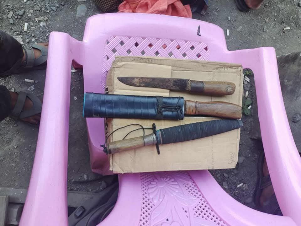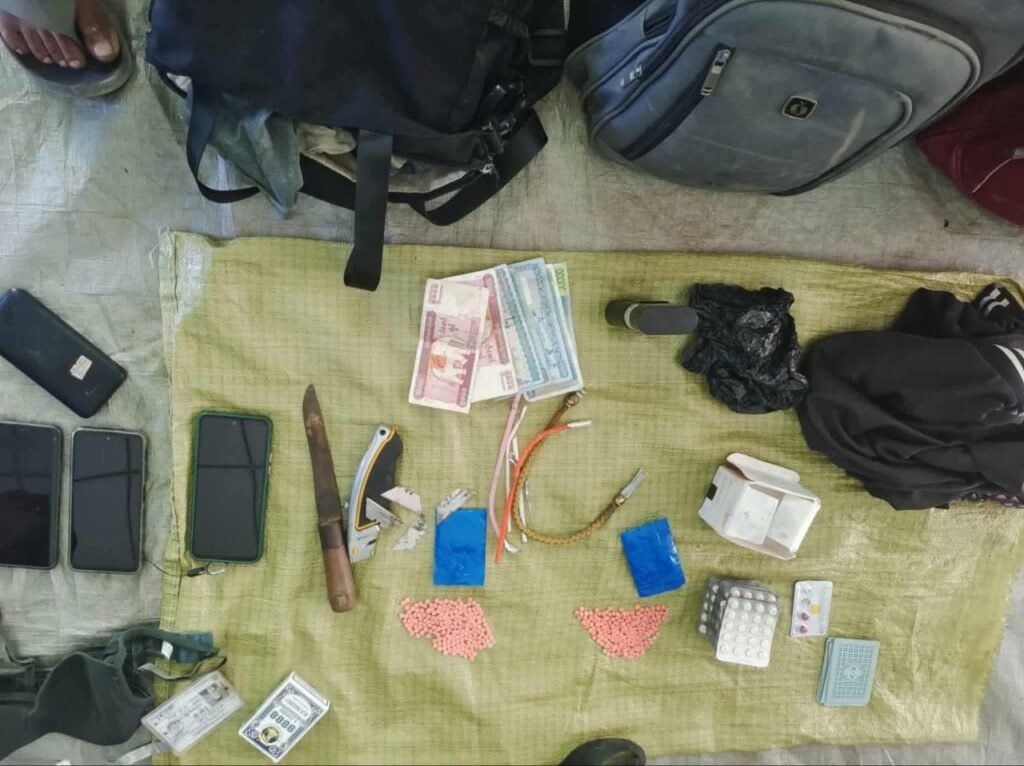 အဲဒီပစ္စည်းတွေဟာ WY ပန်းရောင်စိတ်ကြွရူးသွပ်ဆေးပြားသုံးရာရှစ်ဆယ်ငါးပြား၊မူးယစ်ဆေးသုံးစွဲရာမှာအသုံးပြုတဲ့ခဲပြားနှစ်ပြား၊ရူဂေါက်သုံးခု၊အကျောသွင်းပိုက်တချောင်း၊ ဓါးမြှောင်နှစ်လက်၊ပြောက်ကျားဝတ်စုံနှစ်ထည်၊လိပ်သုံးကောင်၊အမျိုးသားကာမဆေးတကတ်၊အိပ်ဆေးပြားလို့ယူဆရတဲ့ဆေးကတ် ဆယ်ကတ်ကို သိမ်း ဆည်းရမိခဲ့တယ်လို့ ဆိုပါတယ်။