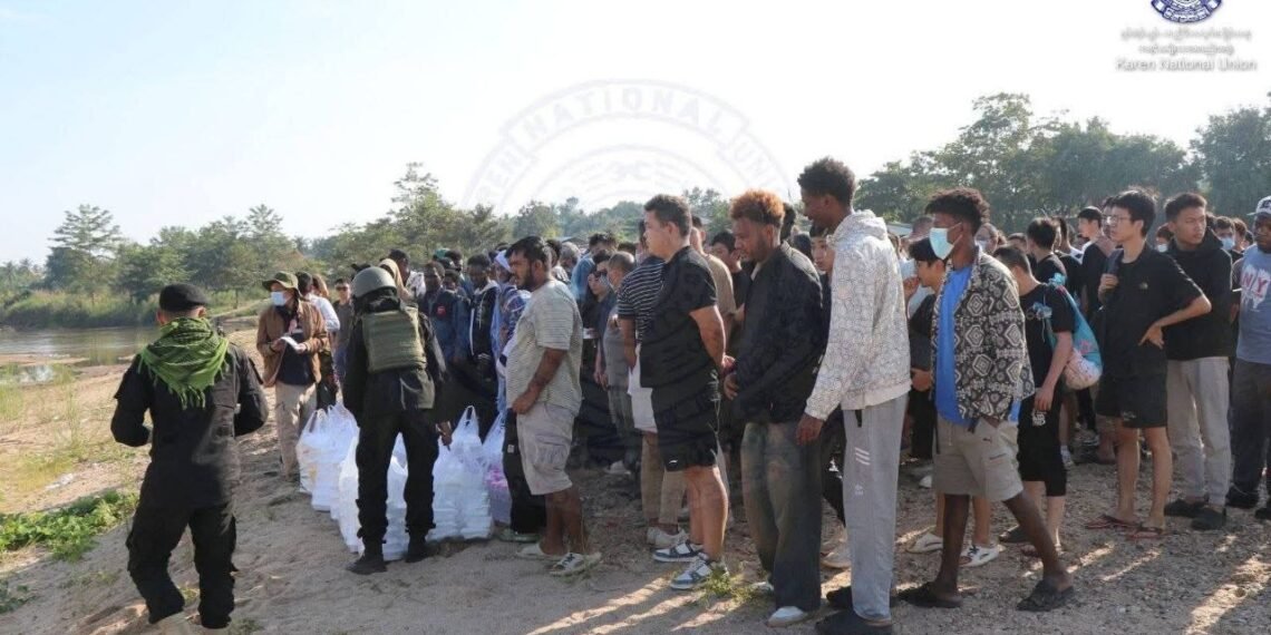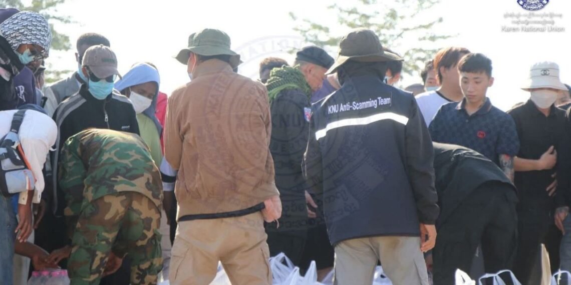 မင်းလက်ပံ ကျားဖြန့်ဧရိယာ Shunda Park scam ခြံဝင်းနေရာမှ တရုတ်နိုင်ငံသားခုနှစ်ဆယ်ငါးဦးကို ထိုင်းအာဏာပိုင်တွေဆီ လွှဲပြောင်းပေးခဲ့တယ်လို့ ကရင်အမျိုးသားအစည်းအရုံးမှ ဒီဇင်ဘာလ ၂ ရက်၊ မနေ့ကထုတ်ပြန်ပါတယ်။