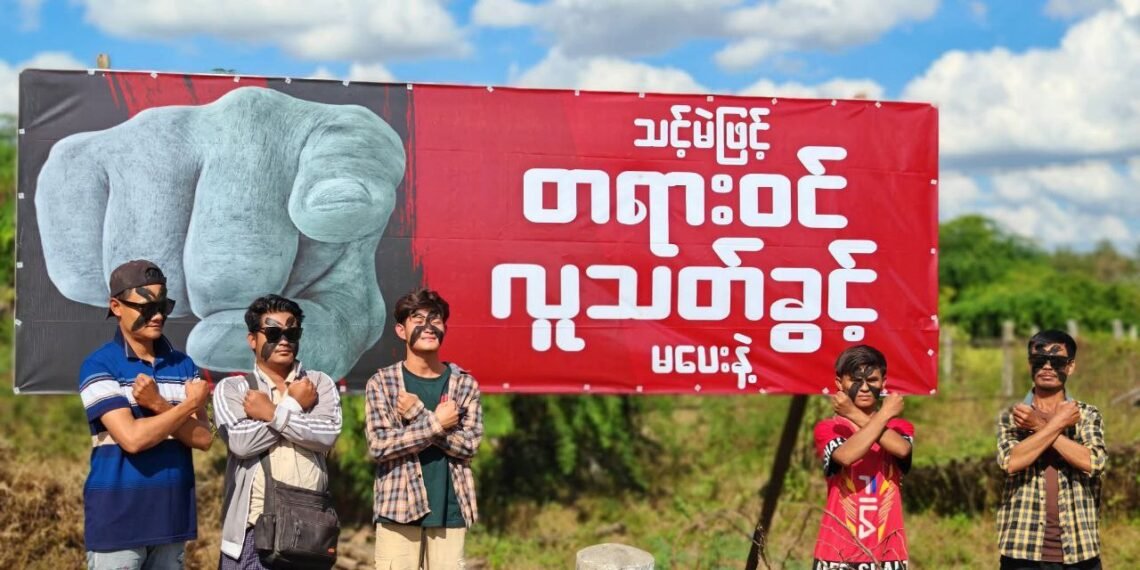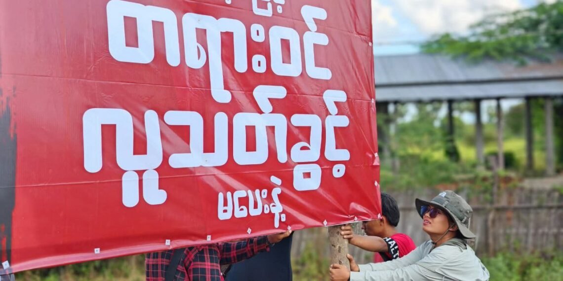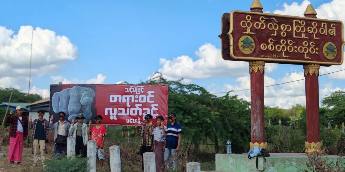 လာမယ့်ဒီဇင်ဘာ ၂၈ ရက်နဲ့ဇန်နဝါရီ ၁၁ ရက်နေ့တွေမှာအပိုင်းလိုက်ကျင်းပမယ့် စစ်ကော်မရှင်တပ်ရဲ့ အတုအယောင်ရွေးကောက်ပွဲကို ပြည်သူတရပ်လုံးနဲ့အတူ ဆားလင်းကြီးမြို့နယ်အတွင်း ပြည်သူလူထုကလည်းအလိုမရှိကြောင်း ဆန့်ကျင်ကန့်ကွက်နေကြတာဖြစ်ပါတယ်။