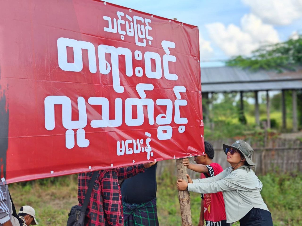 လာမယ့်ဒီဇင်ဘာ ၂၈ ရက်နဲ့ဇန်နဝါရီ ၁၁ ရက်နေ့တွေမှာအပိုင်းလိုက်ကျင်းပမယ့် စစ်ကော်မရှင်တပ်ရဲ့ အတုအယောင်ရွေးကောက်ပွဲကို ပြည်သူတရပ်လုံးနဲ့အတူ ဆားလင်းကြီးမြို့နယ်အတွင်း ပြည်သူလူထုကလည်းအလိုမရှိကြောင်း ဆန့်ကျင်ကန့်ကွက်နေကြတာဖြစ်ပါတယ်။
