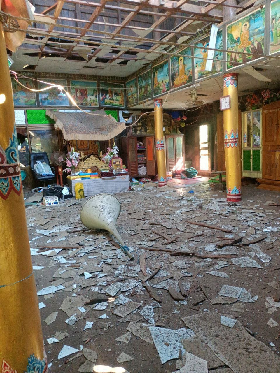 အဲဒီအပြင် ကျောက်ကလယ်ရွာ ဘုန်းကြီးကျောင်းကို အဲဒီ​နေ့ နေ့လည် ၂ နာရီခန့်အချိန်က စစ်ကော်မရှင်တပ် ဒရုန်းဗုံးနဲ့တိုက်ခိုက်လို့ ပျက်စီးခဲ့ပါတယ်။
