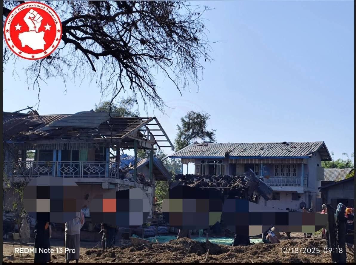 စစ်ကိုင်းတိုင်း၊ ဝက်လက်မြို့နယ်အရှေ့ခြမ်းကို ဒီဇင်ဘာလ ၁၇ ရက်၊ မနေ့ညက စစ်ကော်မရှင်တပ်လေကြောင်းတိုက်ခိုက်လို့ အရပ်သားလေးဦးသေဆုံးပြီး ငါးဦးဒဏ်ရာရခဲ့တယ်လို့ Wetlet Informational Network ထုတ်ပြန်ပါတယ်။