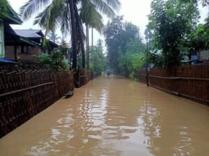 ရခိုင်မှာ မိုးကြီးရေလျှံနေသလို မြစ်ရေ