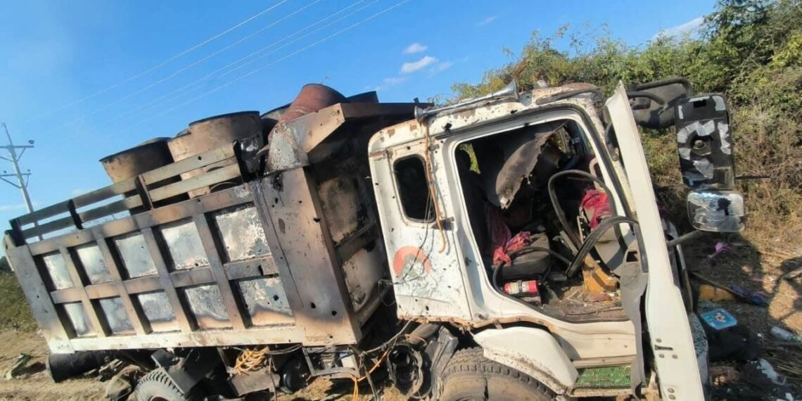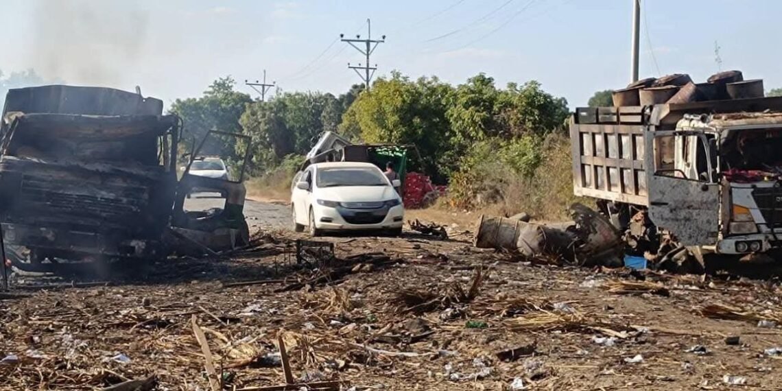 အဲဒီလိုတိုက်ခိုက်လို့ အရပ်သားပြည်သူကိုးဦးသေဆုံးခဲ့ပြီး ဆယ်ဦးဒဏ်ရာရသွားသလို ဆီဘောက်ဆာ၊ ဆီသယ်ကားနဲ့ကုန်စည်ကား စုစုပေါင်းကိုးစီး မီးလာင်ပျက်စီးဆုံးရှုံးခဲ့ရတယ်လို့ဆိုပါတယ်။