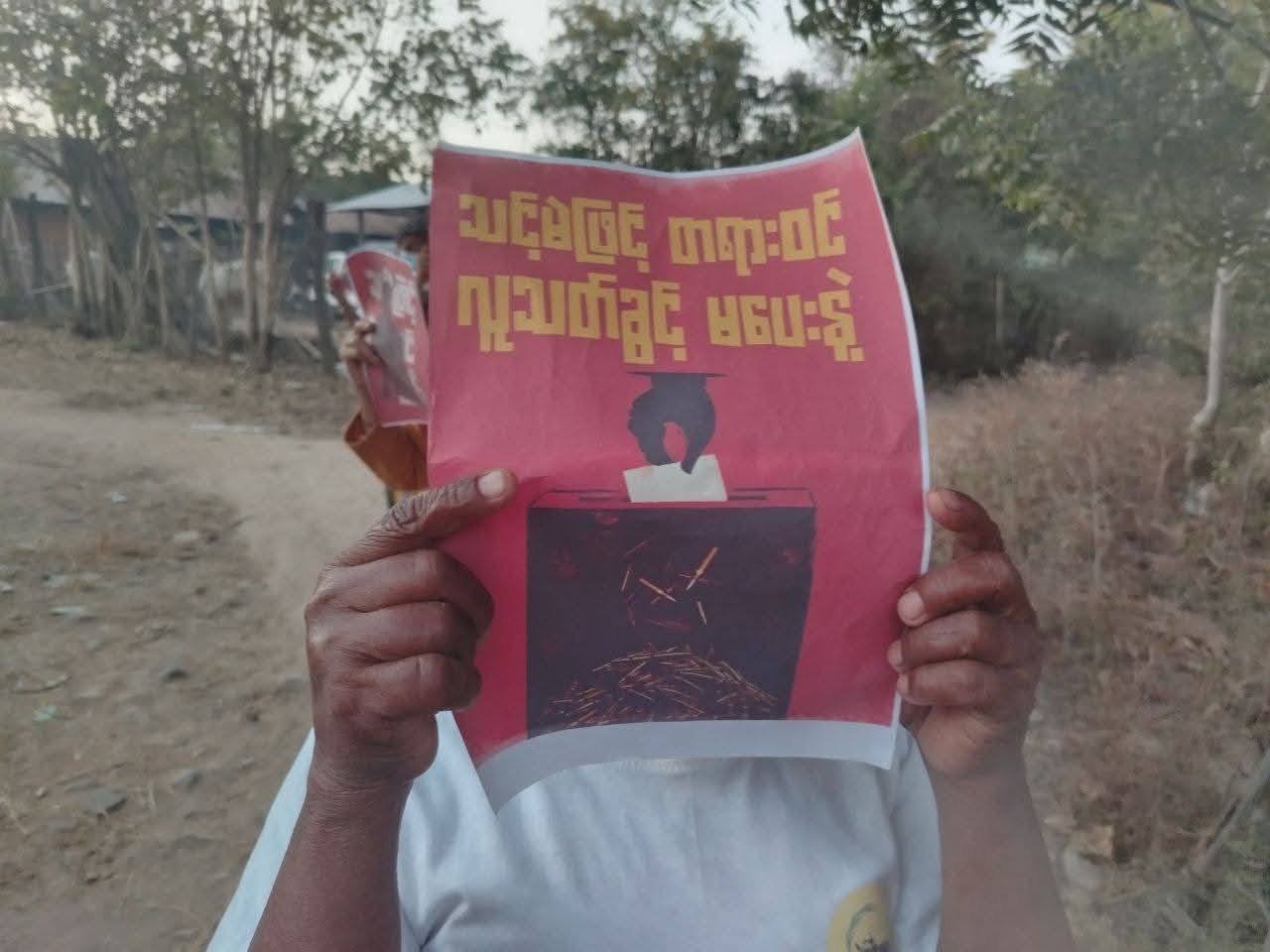 အဲဒီ ရွေးကောက်ပွဲဆန့်ကျင်ရေးလှုပ်ရှားမှုကို ပြည်သူတွေနဲ့ပူးပေါင်းပြီး “စစ်အာဏာရှင်စနစ်ကျဆုံးရေး” နဲ့ ” စစ်ကော်မရှင်ရဲ့ အတုအယောင်ရွေးကောက်ပွဲကို လုံးဝလက်မခံရေး” ဆိုတဲ့ စာကြောင်းတွေနဲ့ ဆန္ဒပြလှုပ်ရှားခဲ့ကြတာပါ။