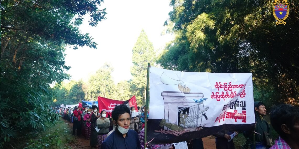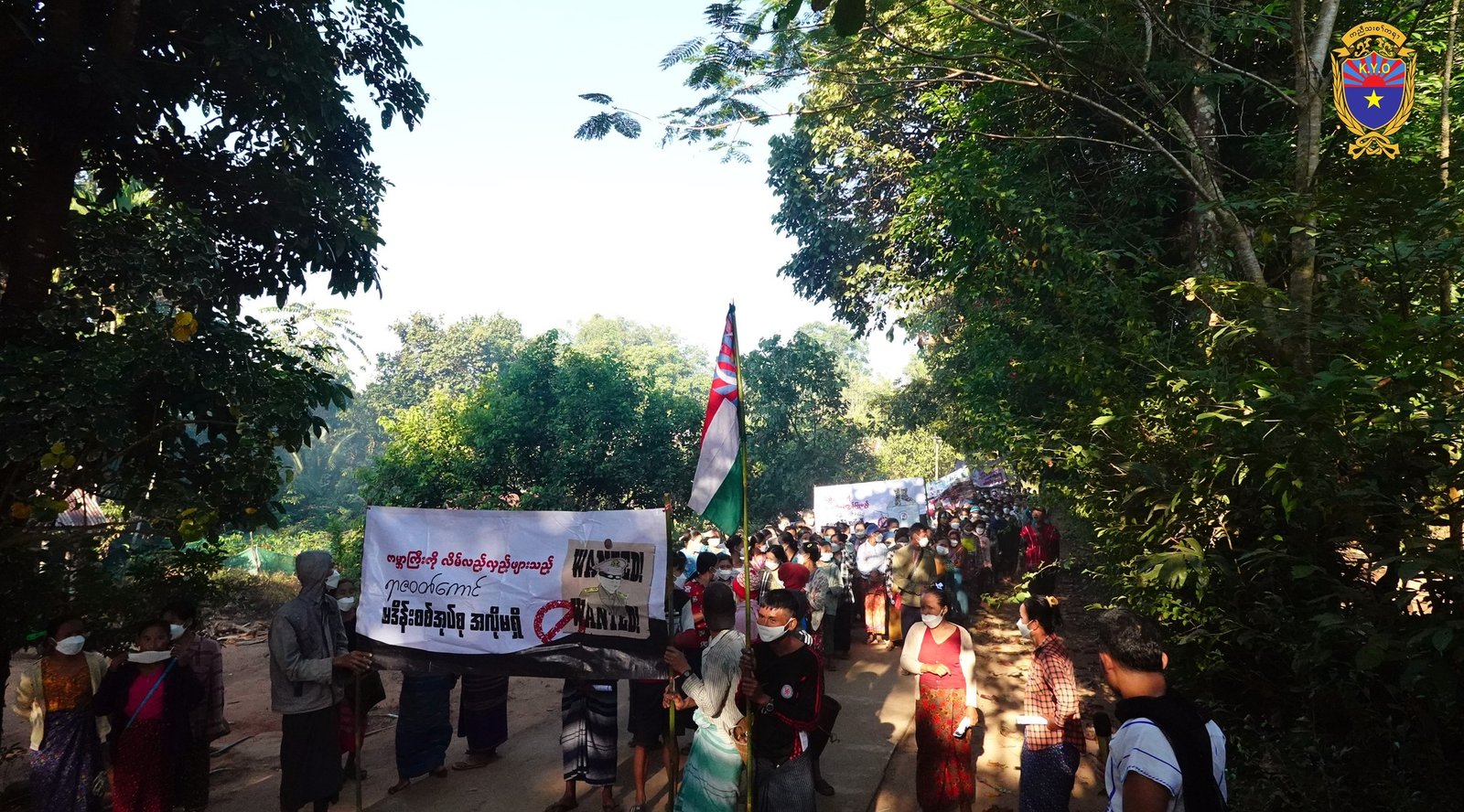 ကေအဲန်ယူ-ကရင်အမျိူးသားအစည်းအရုံး(ကော်သူးလေ)ထိန်းချုပ်နယ်မြေ၊ ဒူးသထူခရိုင်၊ ကျိုက်ထိုမြို့နယ်မှာ စစ်ကော်မရှင်တပ်ရွေးကောက်ပွဲဆန့်ကျင်ကြောင်း ​ဆန္ဒပြခဲ့ကြပါတယ်။