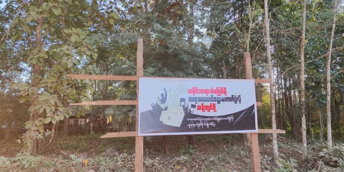“သမိုင်းတရားခံမဖြစ်ဖို့ အတုအယောင်ရွေးကောက်ပွဲကို ဆန့်ကျင်စို့” ဆိုတဲ့ဆိုင်းဘုတ်တွေနဲ့ ကျုံဒိုးမြို့နယ်က ပြည်သူလေးရာစုပေါင်းဆန္ဒပြခဲ့ ကြတာပါ။