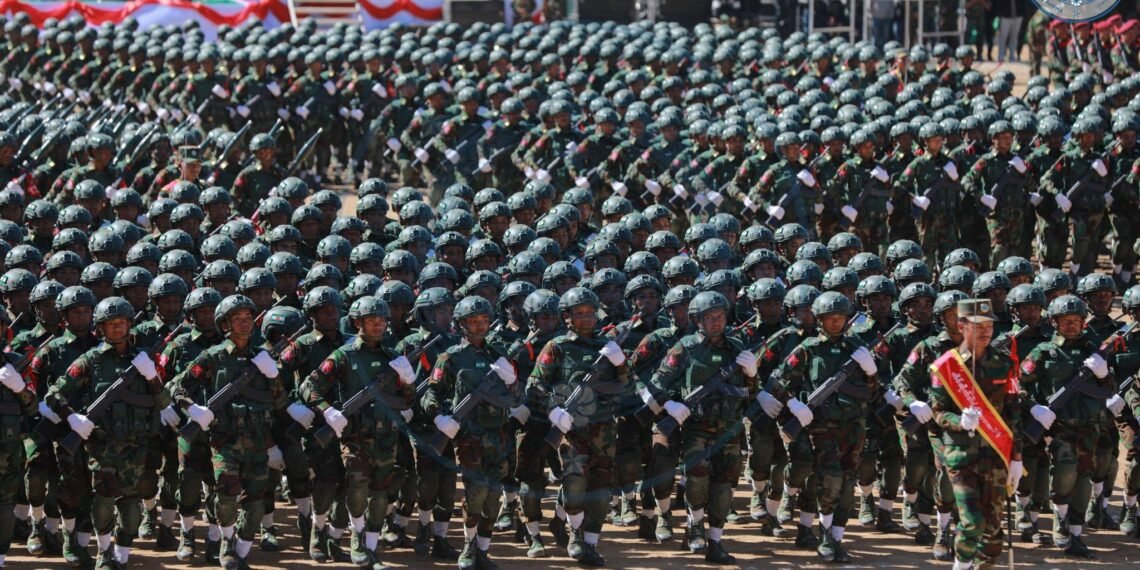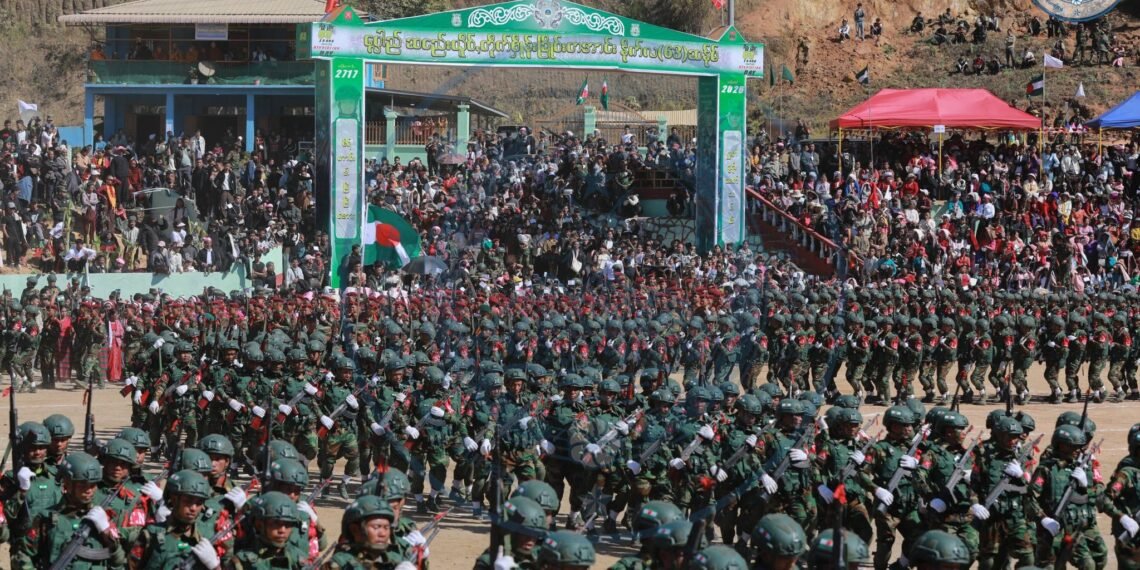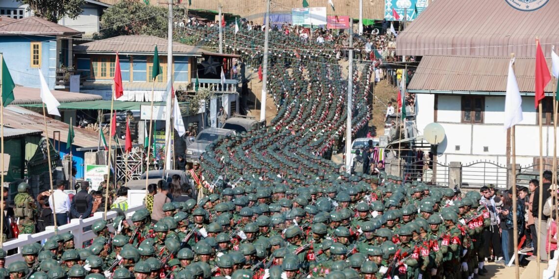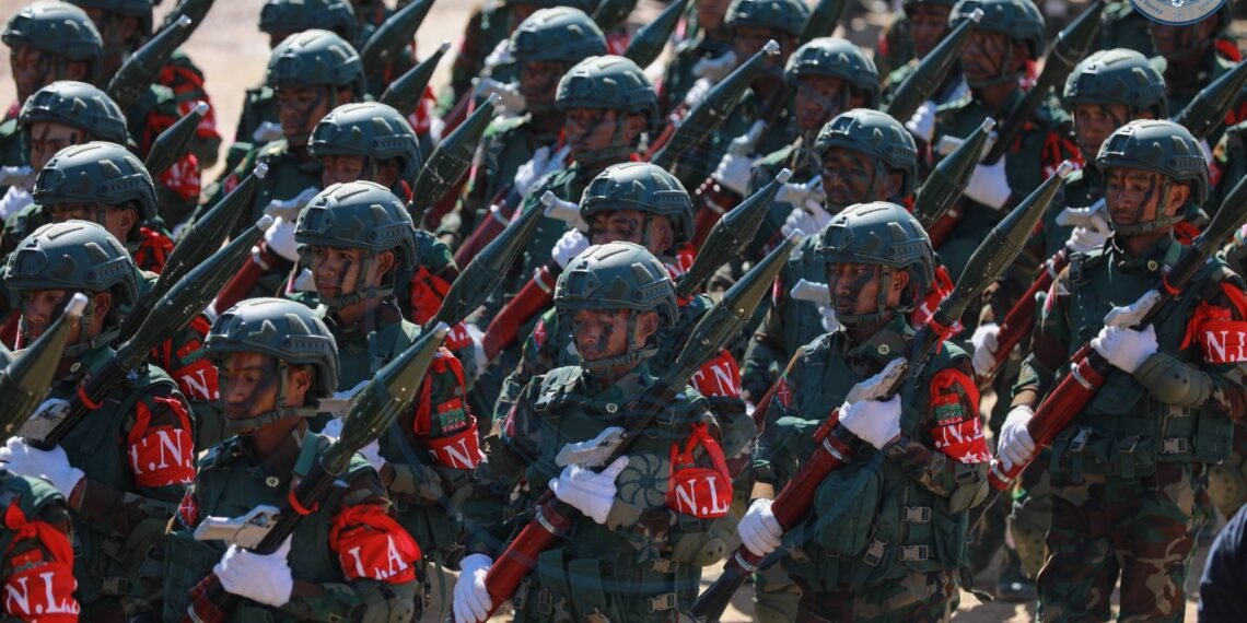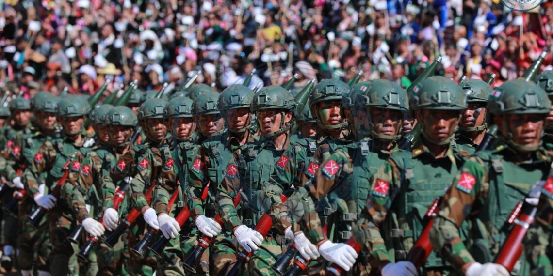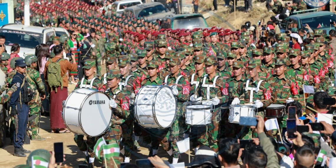 ​အဲဒီအခမ်းအနားမှာ TNLA စစ်သည်တော် အင်အားတထောင့်ငါးရာကျော်က စစ်ကြောင်းဆယ့်ငါးကြောင်းခွဲပြီး စစ်ရေးပြချီတက်ခဲ့ကြသလို ဂုဏ်ပြုစစ်ကြောင်းတွေကလည်း စစ်ရေးပြသရုပ်ဖော်ခဲ့ကြပါတယ်။