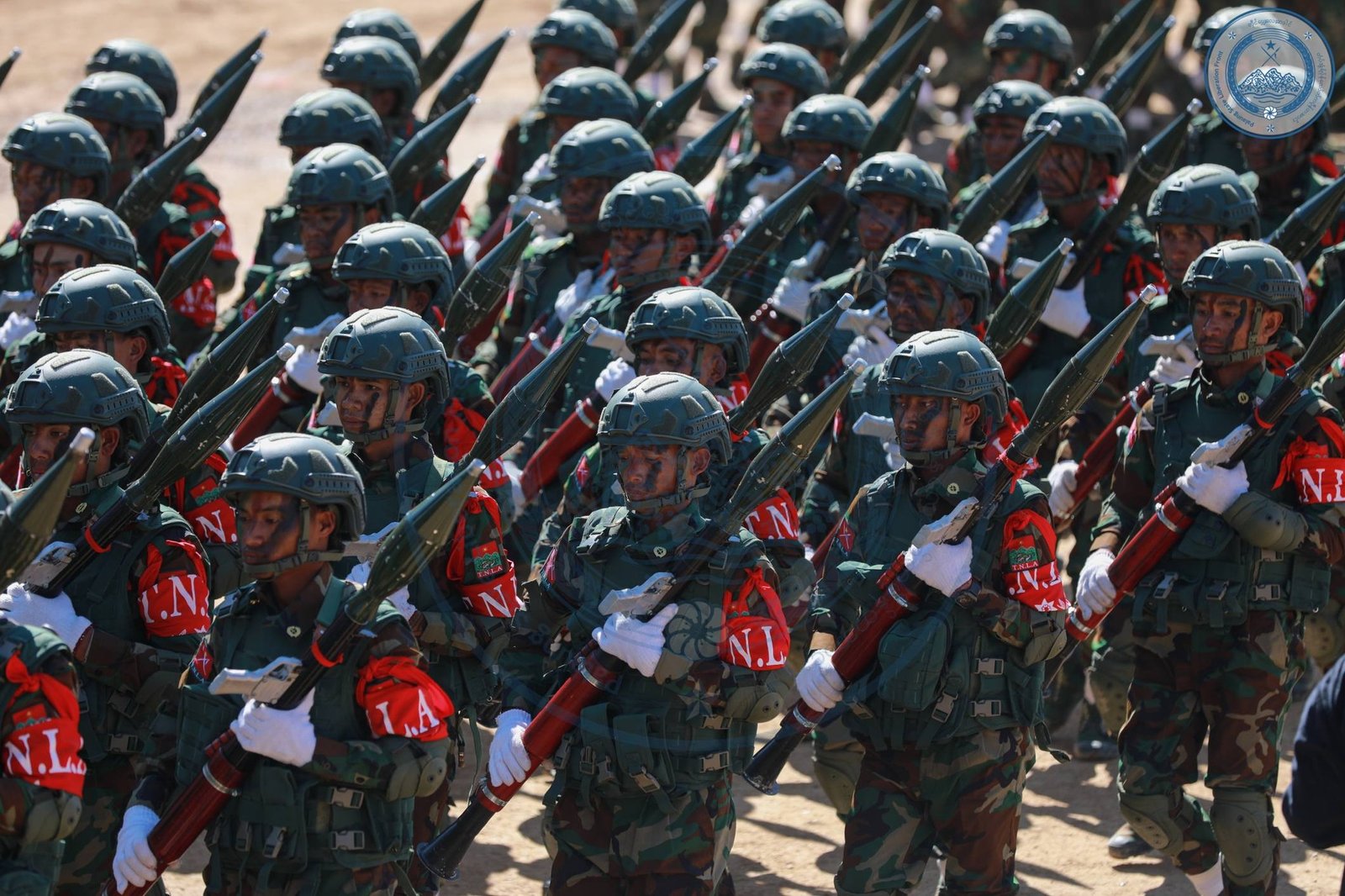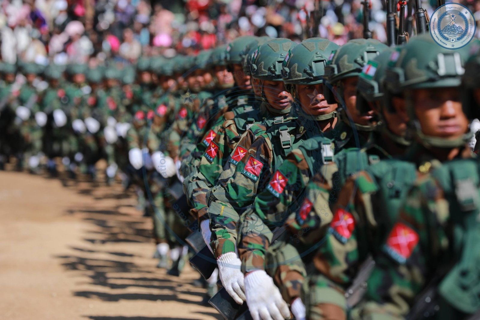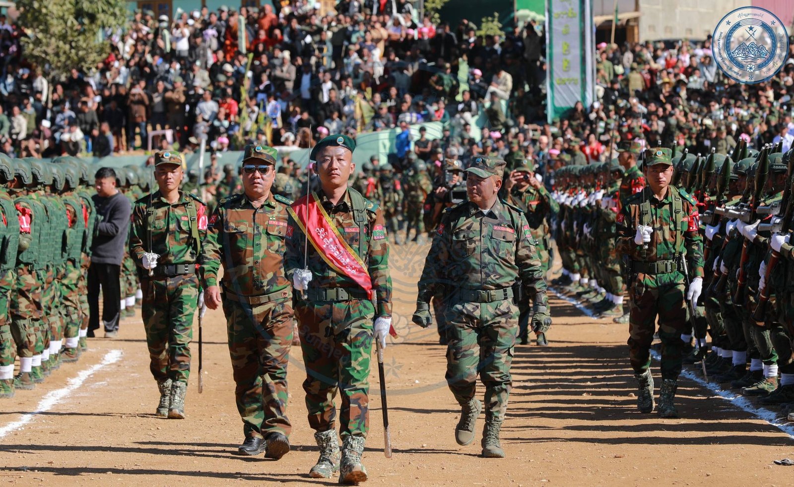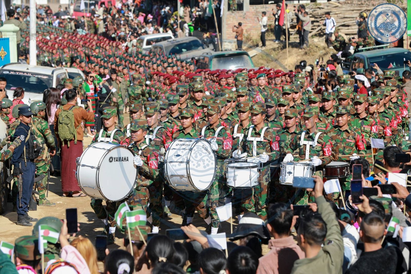 ​အဲဒီအခမ်းအနားမှာ TNLA စစ်သည်တော် အင်အားတထောင့်ငါးရာကျော်က စစ်ကြောင်းဆယ့်ငါးကြောင်းခွဲပြီး စစ်ရေးပြချီတက်ခဲ့ကြသလို ဂုဏ်ပြုစစ်ကြောင်းတွေကလည်း စစ်ရေးပြသရုပ်ဖော်ခဲ့ကြပါတယ်။