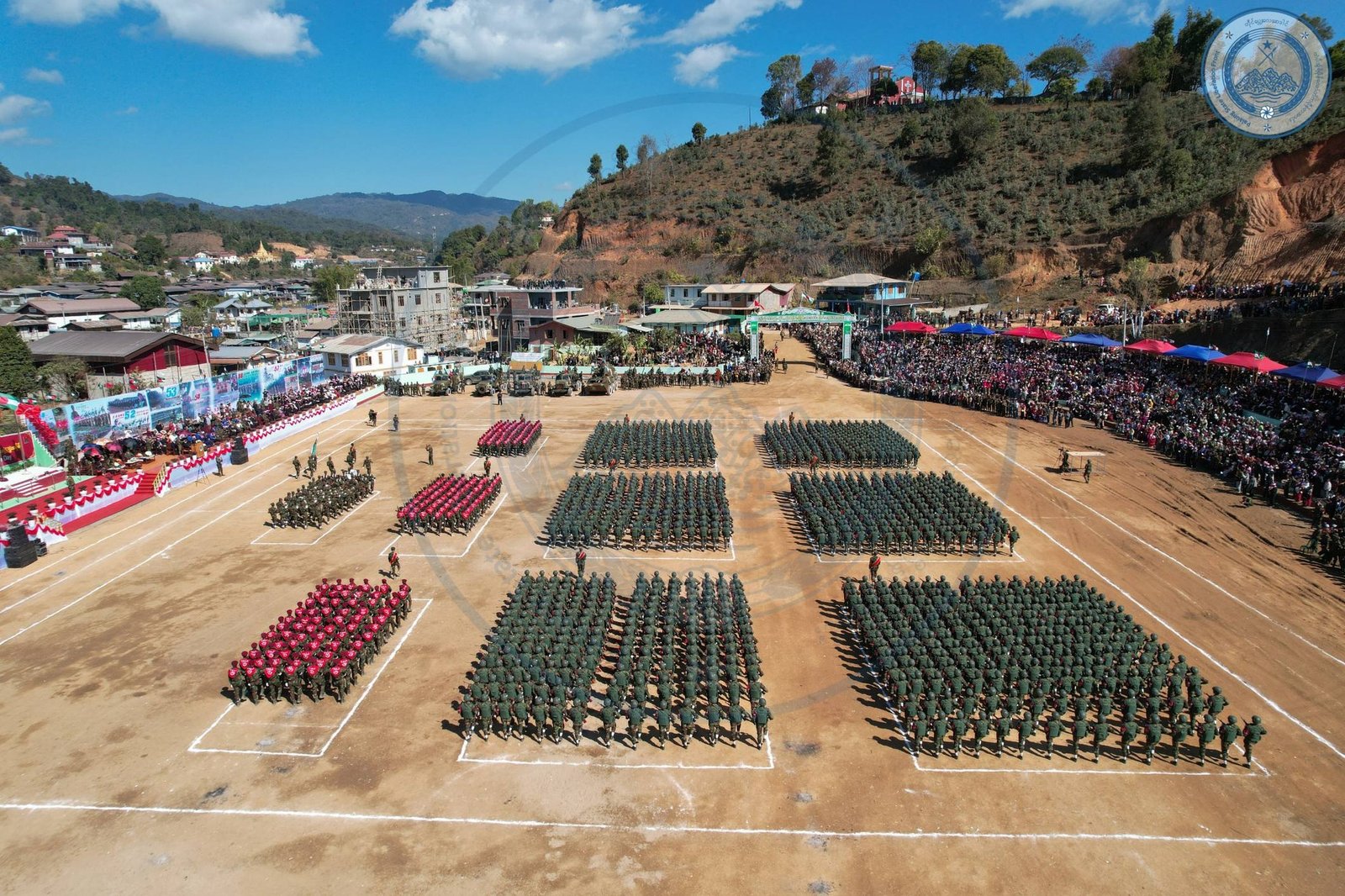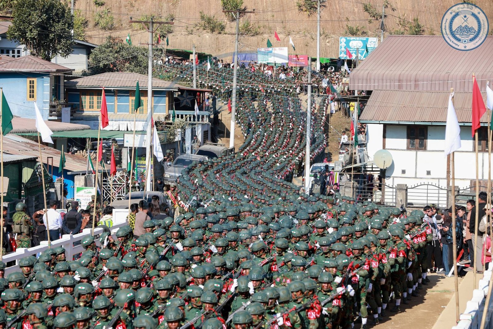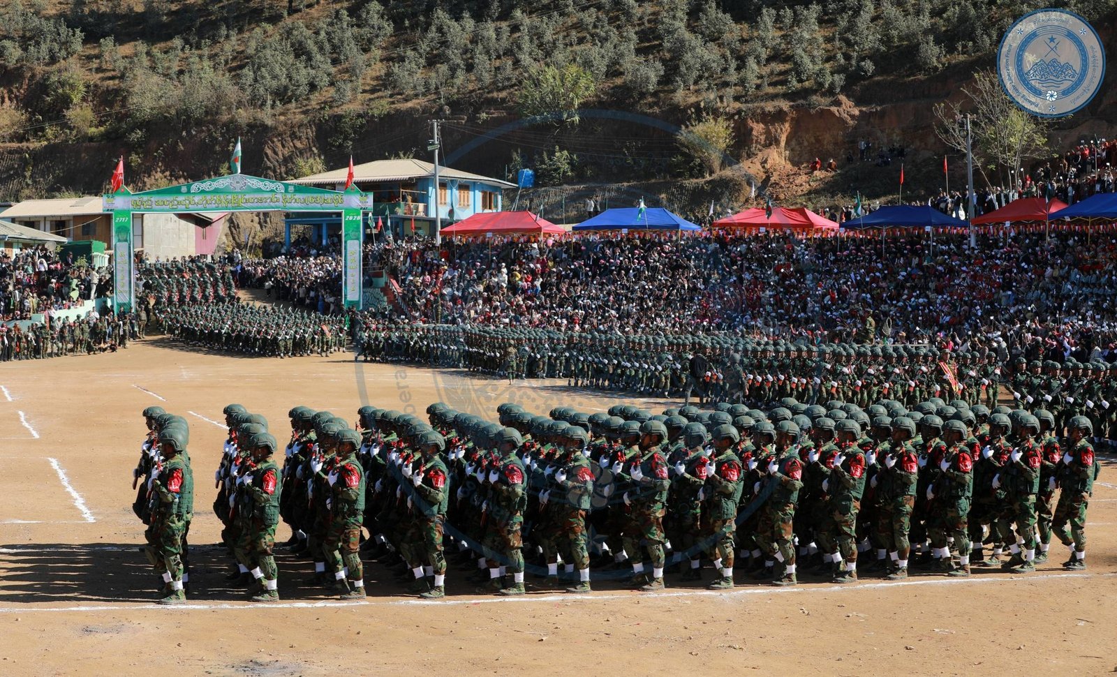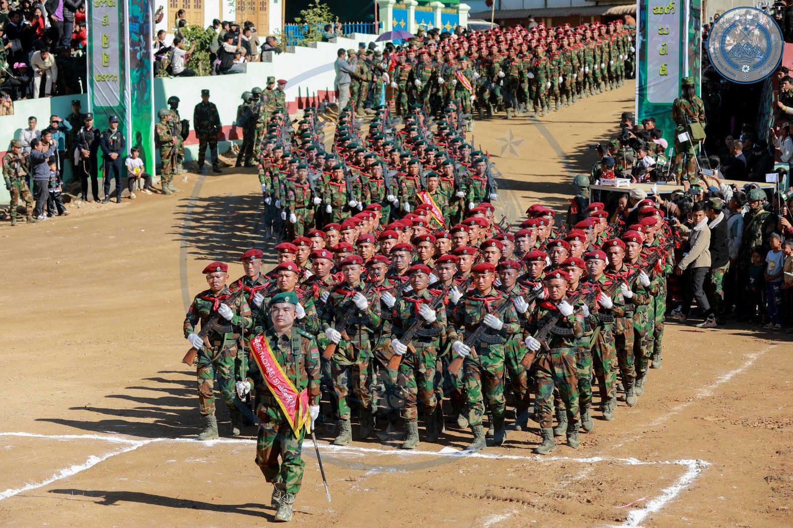 ​အဲဒီအခမ်းအနားမှာ TNLA စစ်သည်တော် အင်အားတထောင့်ငါးရာကျော်က စစ်ကြောင်းဆယ့်ငါးကြောင်းခွဲပြီး စစ်ရေးပြချီတက်ခဲ့ကြသလို ဂုဏ်ပြုစစ်ကြောင်းတွေကလည်း စစ်ရေးပြသရုပ်ဖော်ခဲ့ကြပါတယ်။