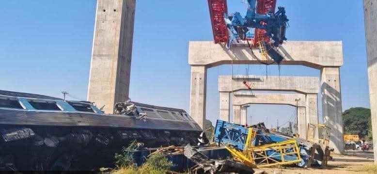 အဲဒီကရိန်းဟာ အမြန်လမ်းကူးတံတားဆောက်လုပ်ရေးမှာ အသုံးပြုနေတာဖြစ်ပြီး ရထားလမ်းပေါ် ပြုတ်ကျနေတာကြောင့် လမ်းပိတ်နေချိန် ရထားကအရှိန်နဲ့ဝင်တိုက်မိကာ လမ်းချော်မှုဖြစ်ပွားခဲ့တယ်လို့ ဆိုပါတယ်။