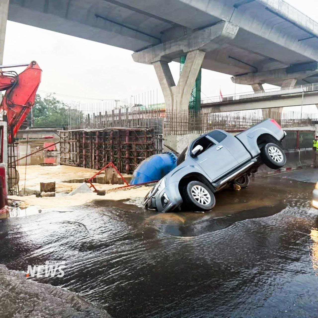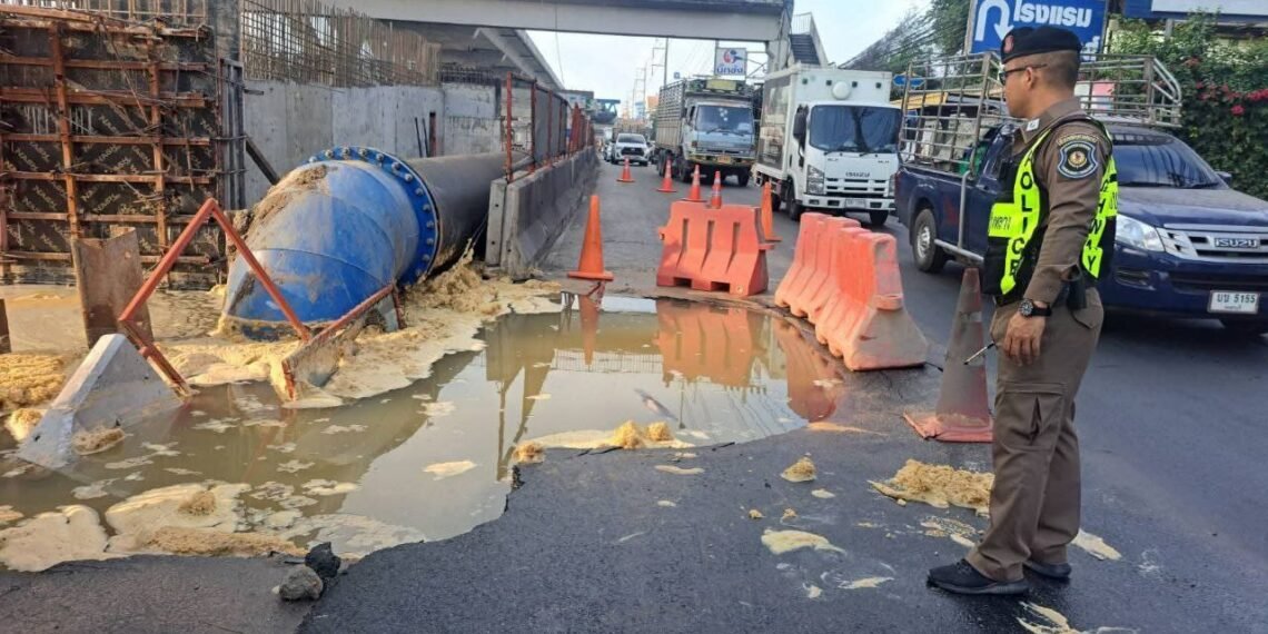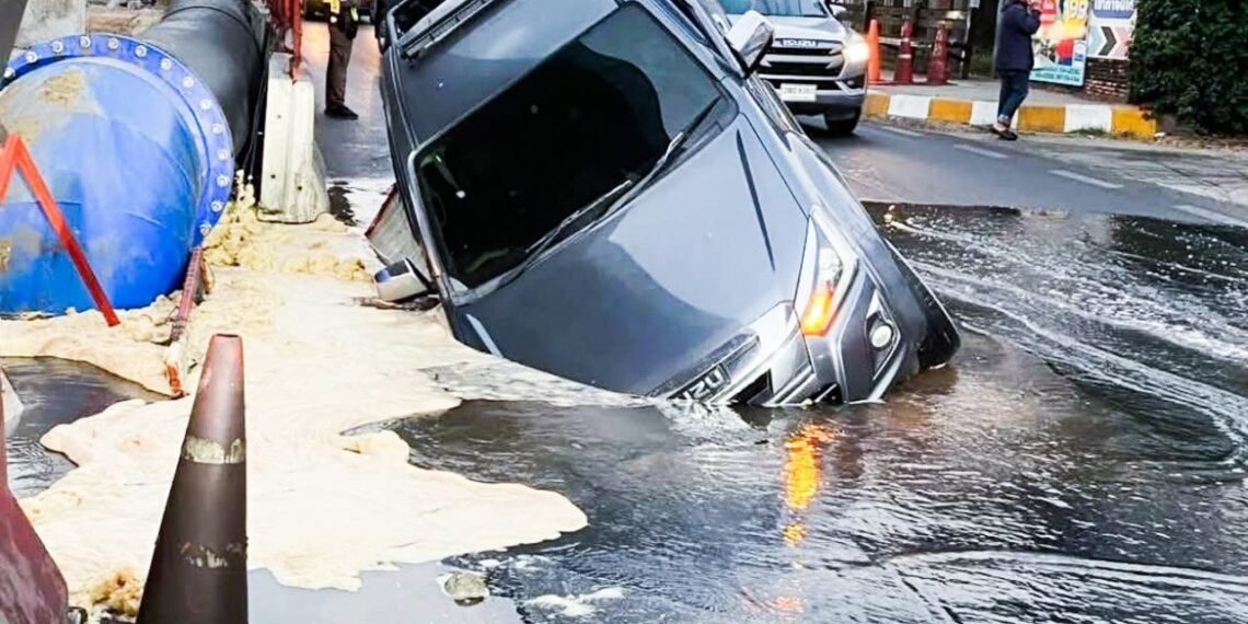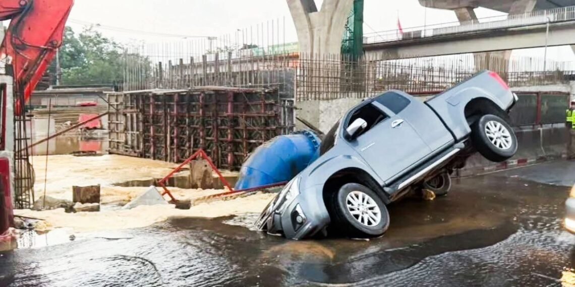 ဘန်ကောက်မြို့အဝင် ရာမ-၂ လမ်းမှာ ဇန်နဝါရီလ ၁၇ ရက်၊ ဒီနေ့မနက်ပိုင်းက မြေအောက်ရေပိုက်ပေါက်ပြီး လမ်းကျွံကျခဲ့တာကြောင့် ပစ်ကပ်ကားတစ်စီး ကျင်းထဲထိုးကျသွားတဲ့ ဖြစ်စဉ်တခု ဖြစ်ပွားခဲ့ပါတယ်။
