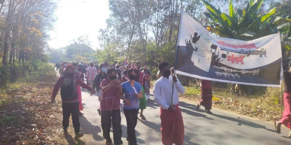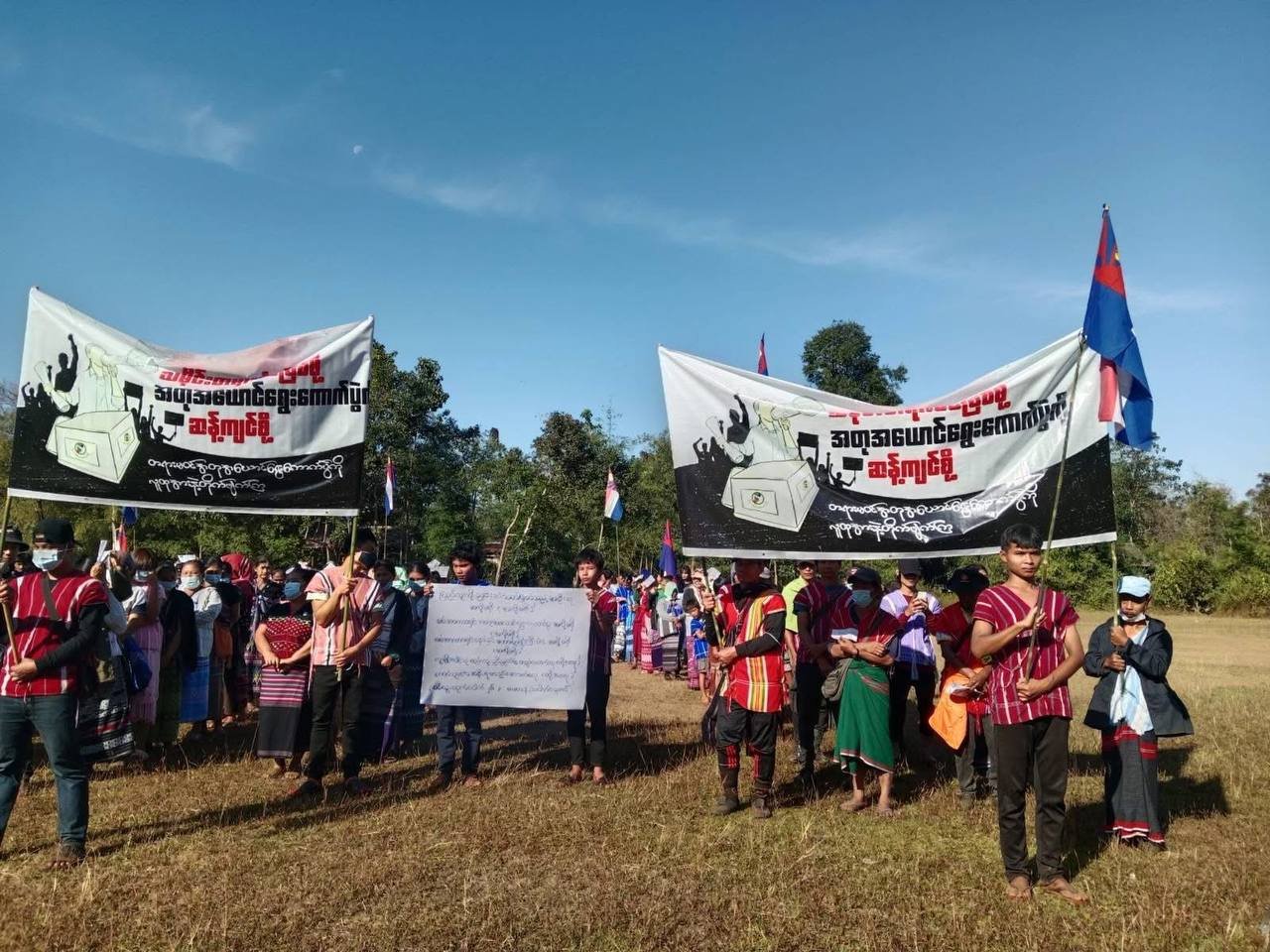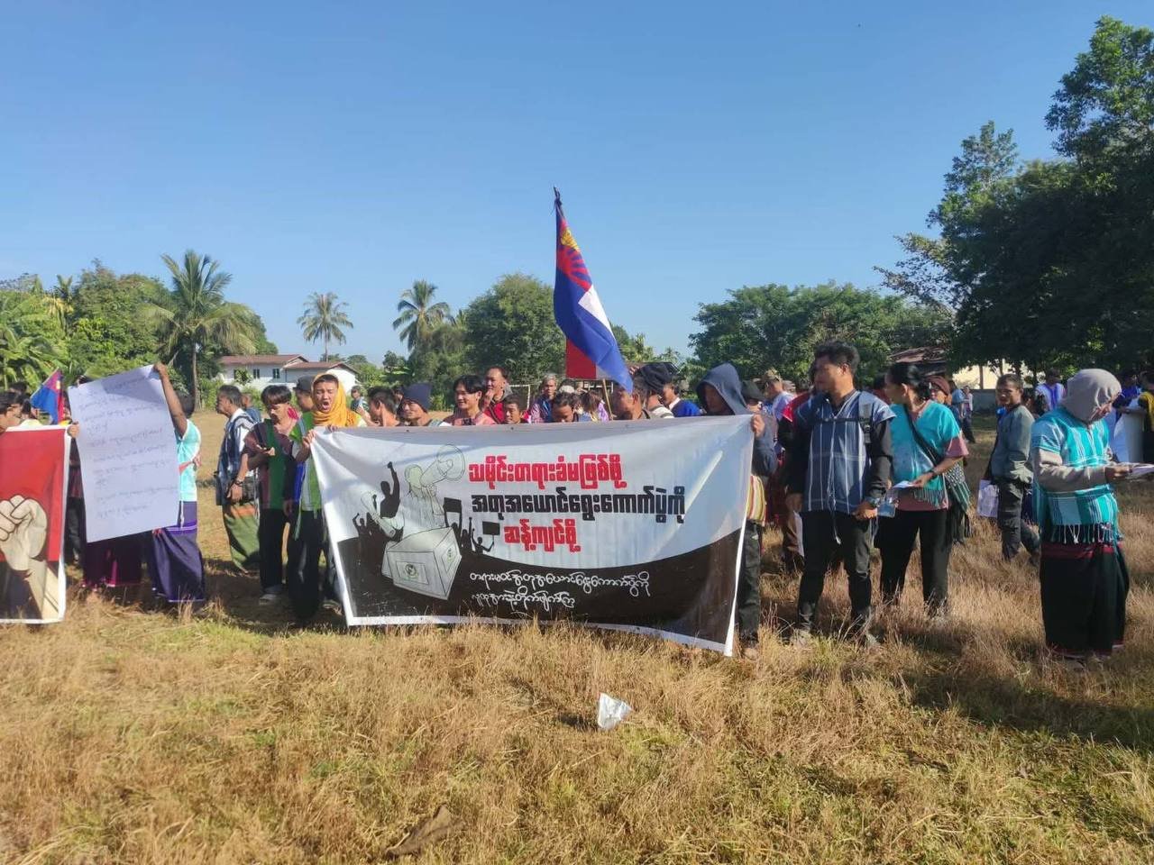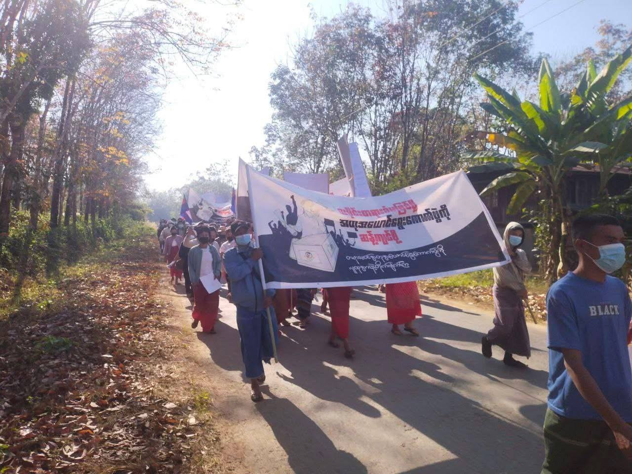 အဲဒီဆန္ဒပြပွဲမှာ ကရင်လူငယ်အစည်းအရုံး (KYO) နဲ့ ဒေသခံတွေဟာ “သမိုင်းတရားခံမဖြစ်ဖို့ အတုအယောင်ရွေးကောက်ပွဲကို ဆန့်ကျင်စို့” ဆိုတဲ့ ဆောင်ပုဒ်တွေကိုကိုင်ဆောင်ပြီး လမ်းမပေါ်ထွက်စီတန်းလှည့်လည်ခဲ့ကြပါတယ်။