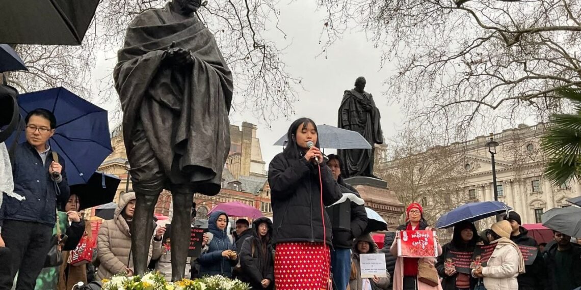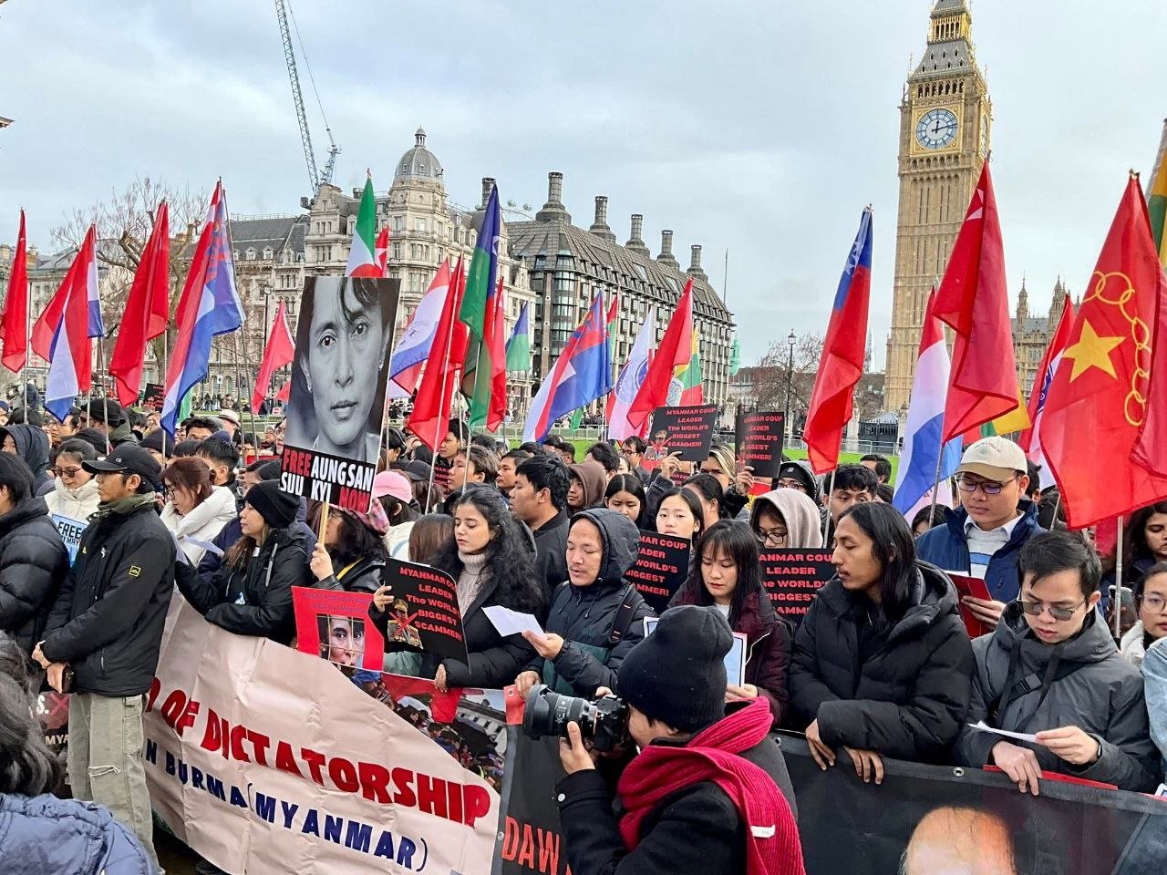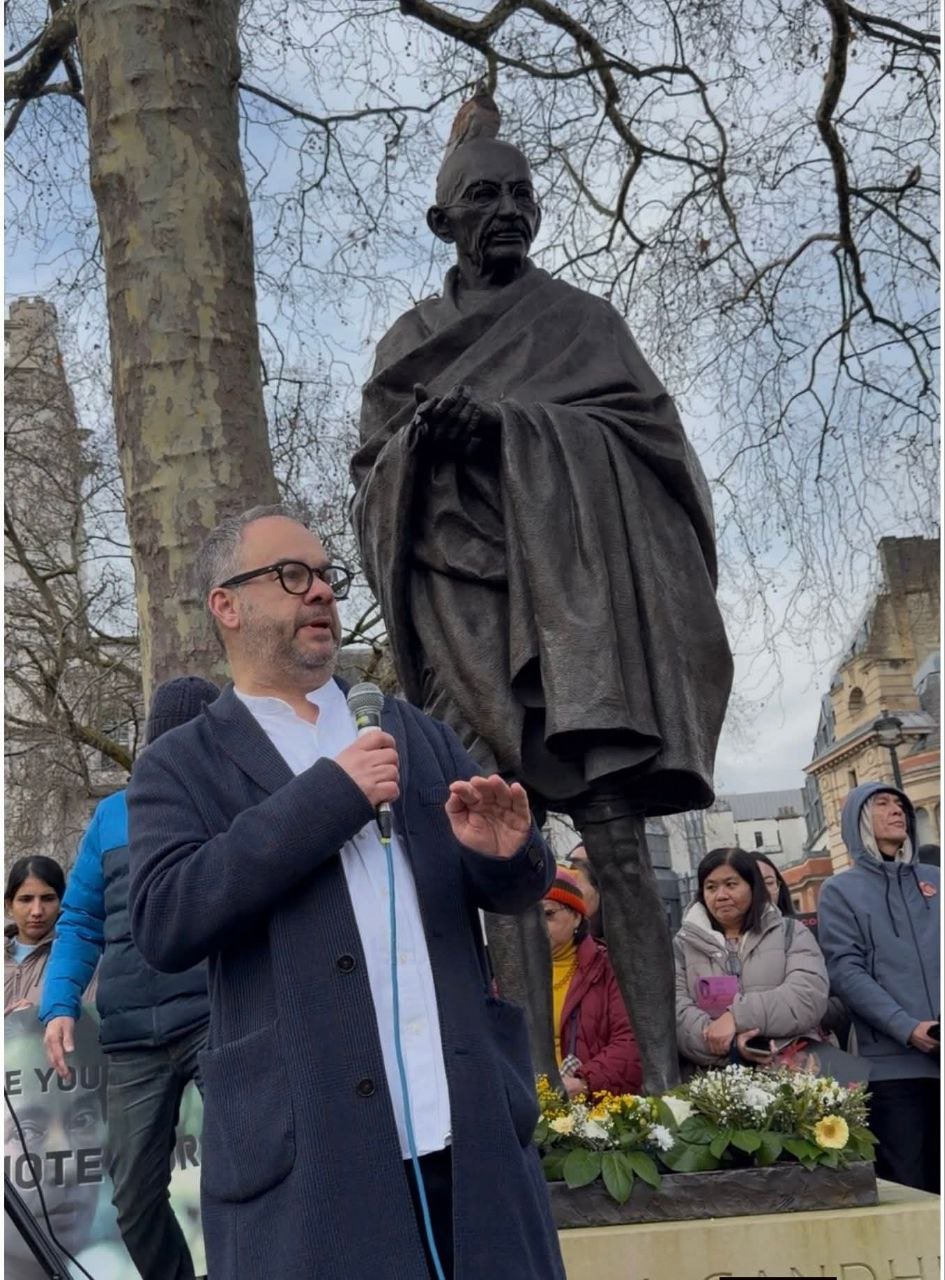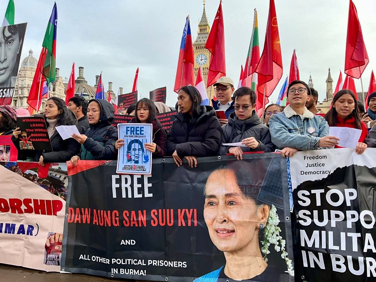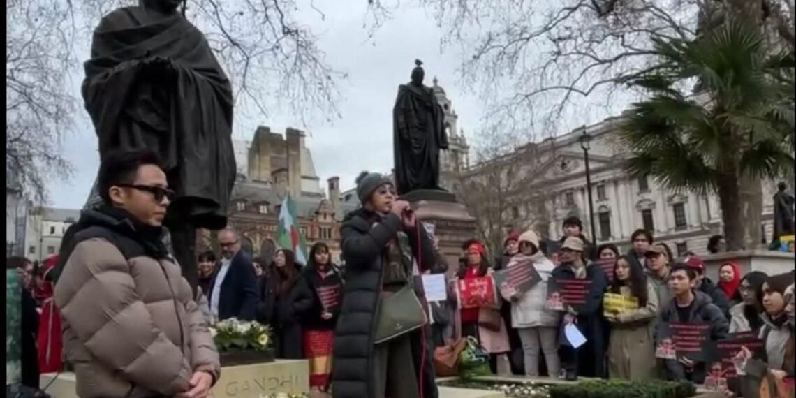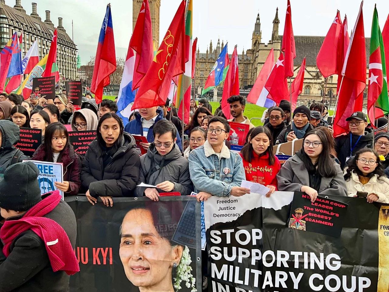 လန်ဒန်မြို့ပါလီမန်ရှေ့မှာ ဖေဖော်ဝါရီ ၁ရက်၊ မနေ့ကကျရောက်တဲ့ နွေဦးတော်လှန်ရေးငါးနှစ်ပြည့်ဆန္ဒပြပွဲကို ကျင်းပခဲ့ပါတယ်။