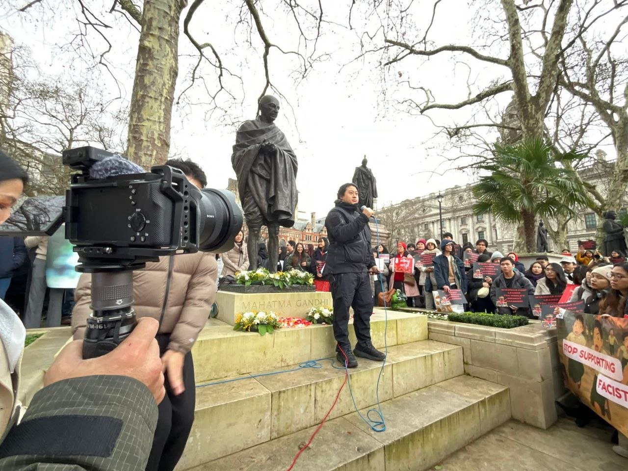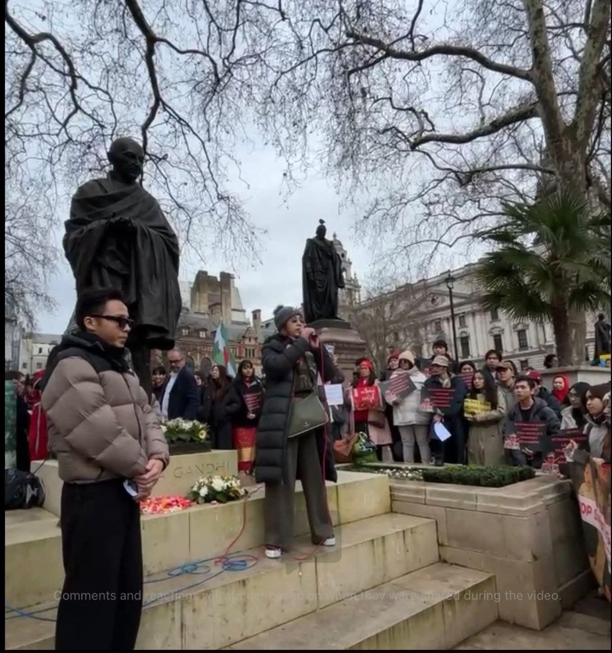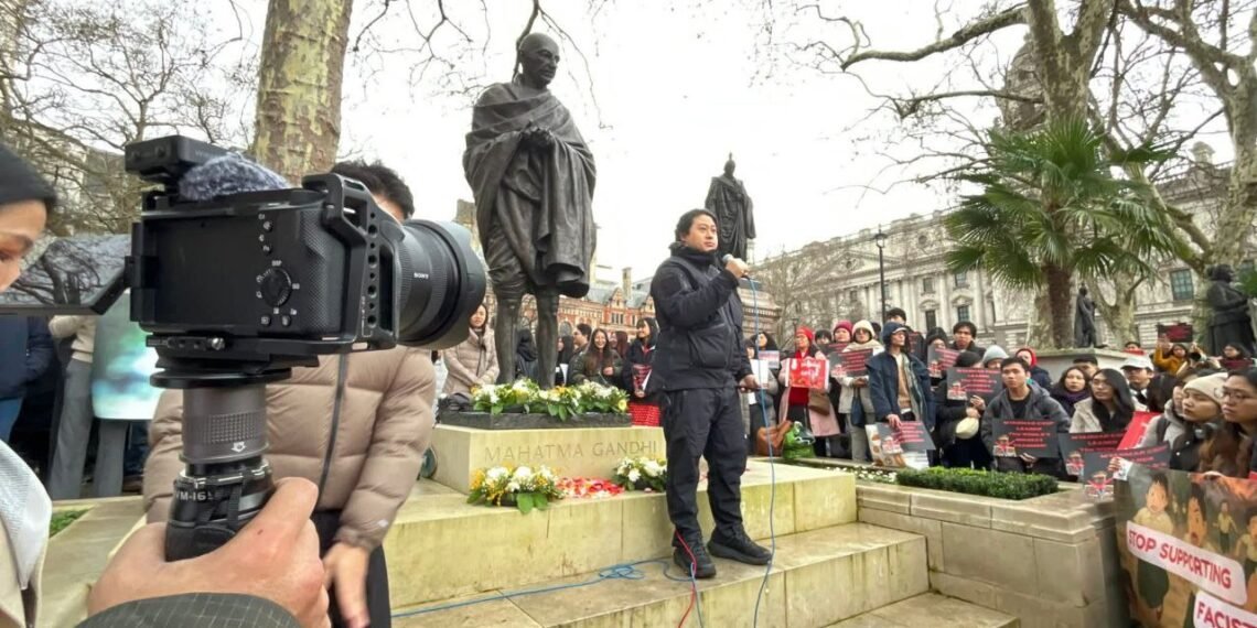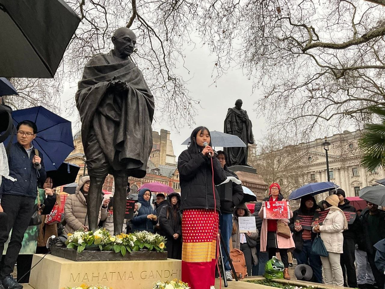 အဲဒီဆန္ဒပြပွဲကို ဒေါ်အောင်ဆန်းစုကြည်ရဲ့ သားငယ်ကိုထိန်လင်း ယူကေနိုင်ငံဆိုင်ရာ NUG ကိုယ်စားလှယ်တွေဖြစ်တဲ့ ဦးမောင်မောင်အောင်နဲ့ ဒေါက်တာသက်ကိုကို၊ လန်ဒန်မြို့တော်ဝန်ကြီးဟောင်း Mr. Paul Scully တို့အပြင် တိုင်းရင်းသားအဖွဲ့အစည်းအသီးသီးက ကိုယ်စားလှယ်တွေတက်ရောက်စကားပြောခဲ့ကြပါတယ်။
