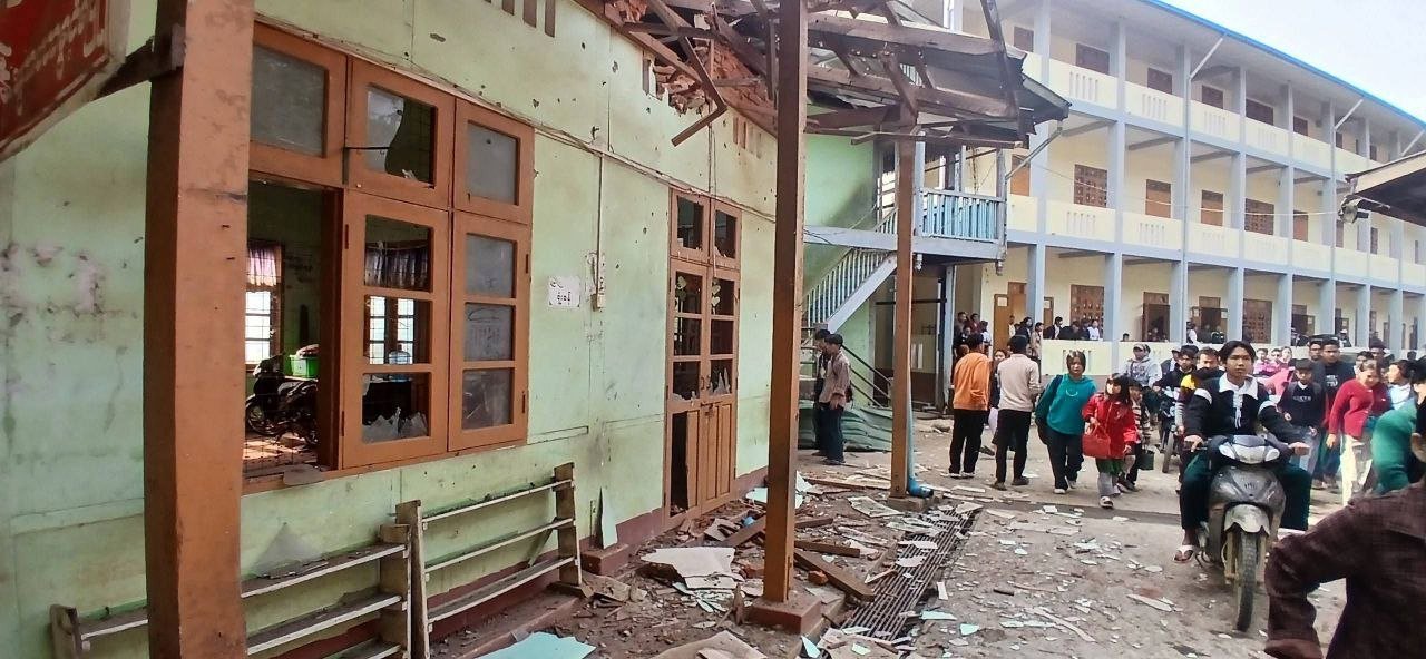ကချင်ပြည်၊ ဖားကန့်မြို့ရှိ စာသင်ကျောင်းကို ဖေဖော်ဝါရီလ ၂ ရက်၊ ဒီနေ့မနက်က လက်နက်ကြီးကျရောက်ပေါက်ကွဲလို့ ကလေးတဦးဒဏ်ရာရသွားပါတယ်။