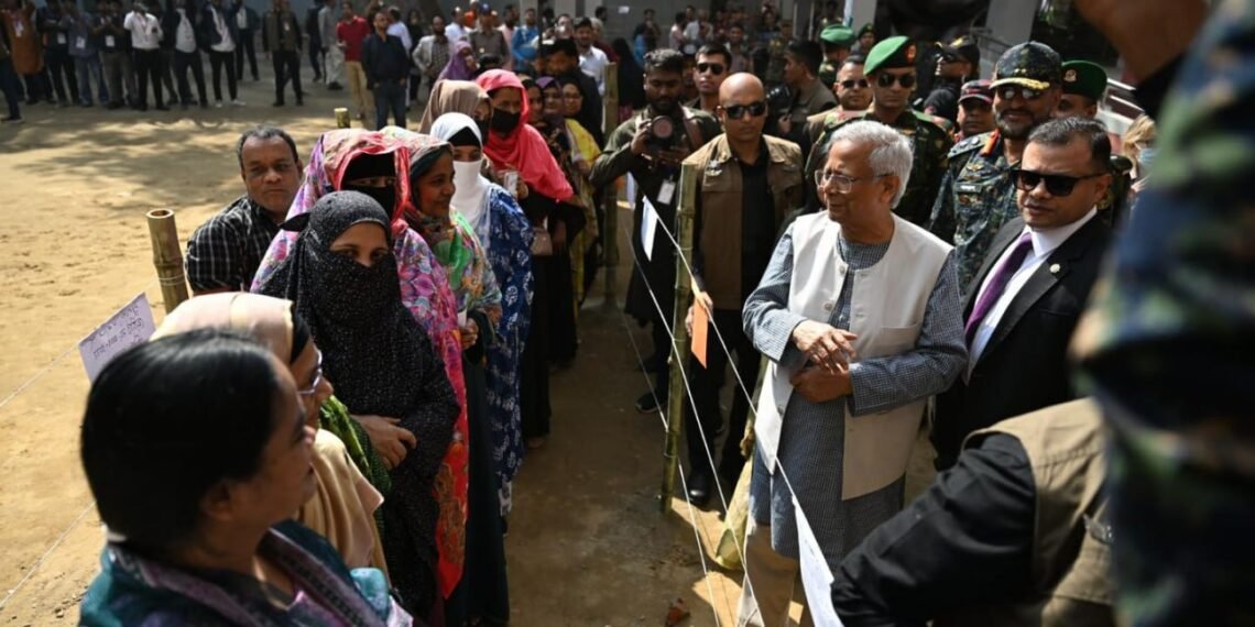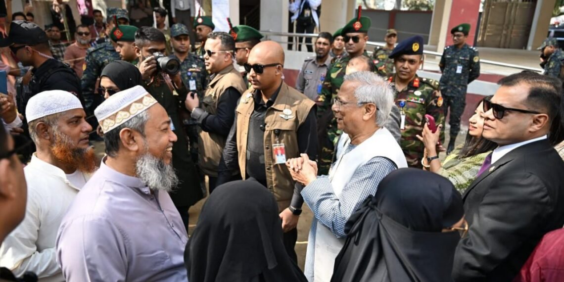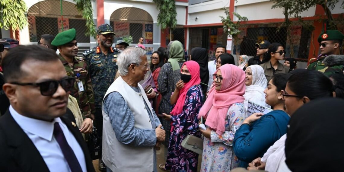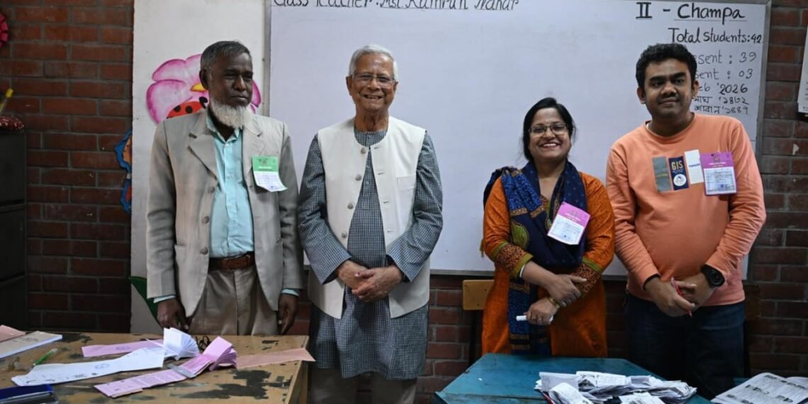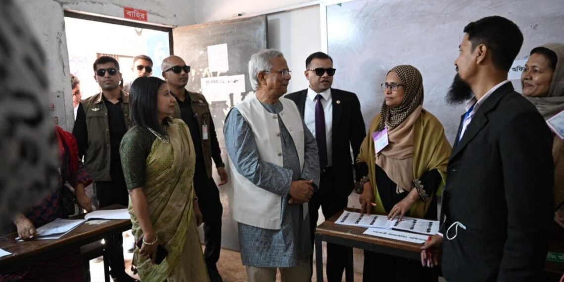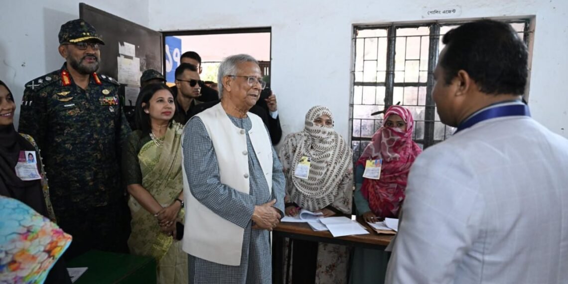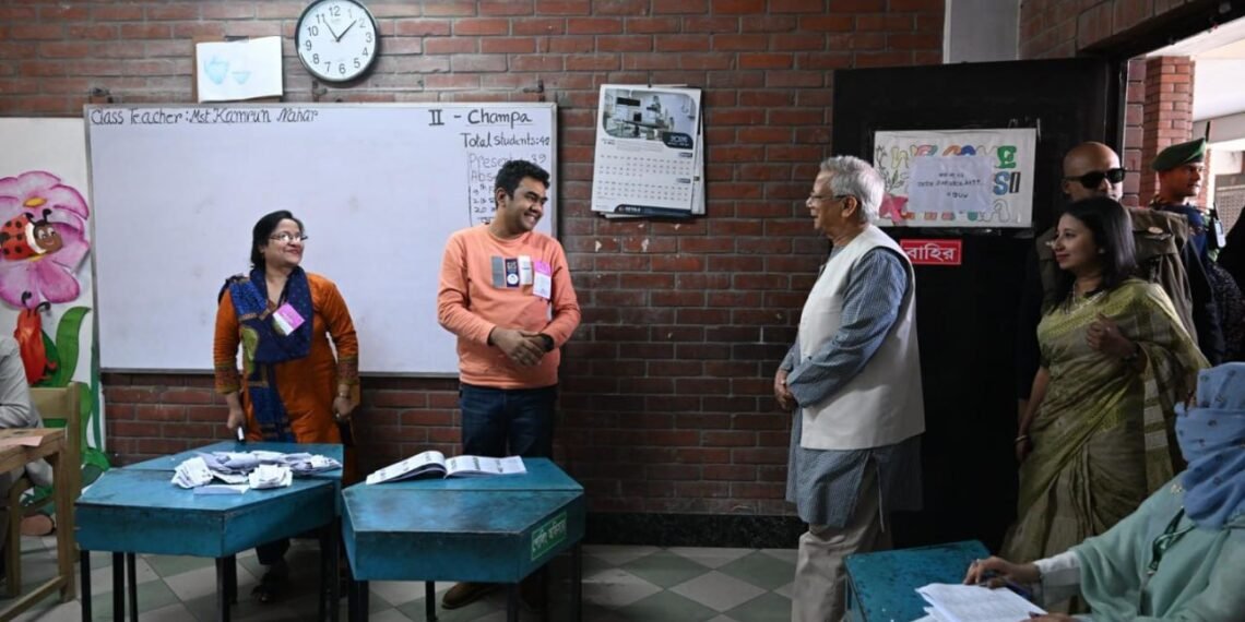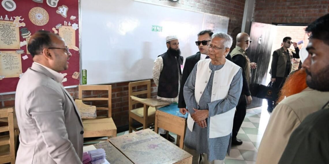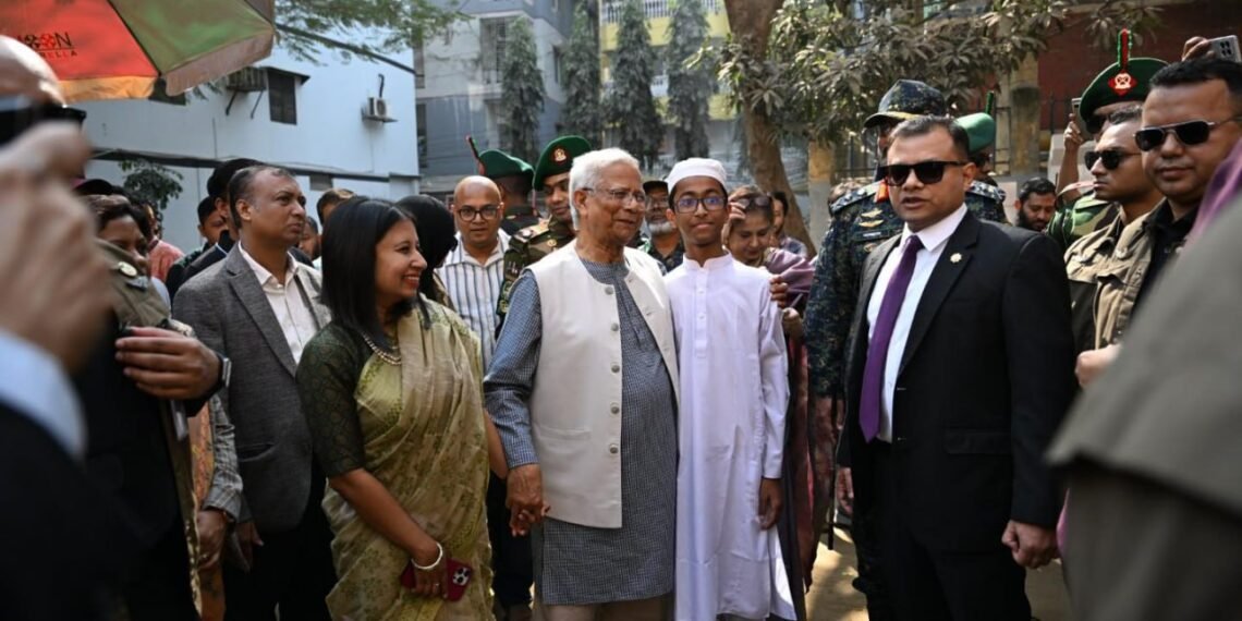 ဘင်္ဂလားဒေ့ရှ်နိုင်ငံရဲ့ အဓိကအကြံပေးပုဂ္ဂိုလ် (ယာယီအစိုးရအကြီးအကဲ) ပရော်ဖက်ဆာမိုဟာမက်ယူနွတ်စ်ဟာ ဒီနေ့မနက်ပိုင်းက ဒါကာမြို့ရှိ Gulshan Model School & College မဲရုံမှာ ကိုယ်တိုင်မဲပေးခဲ့ပါတယ်။