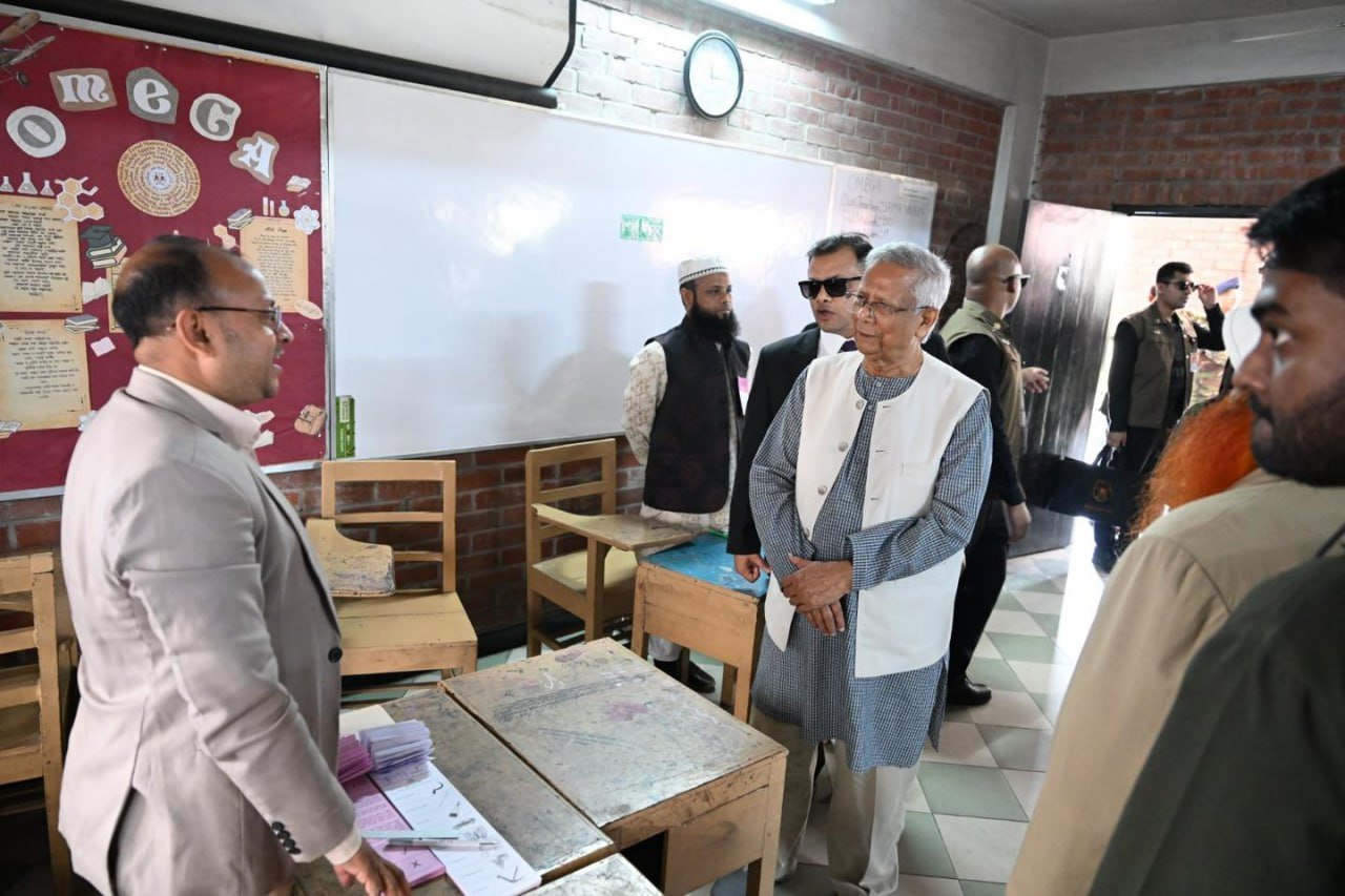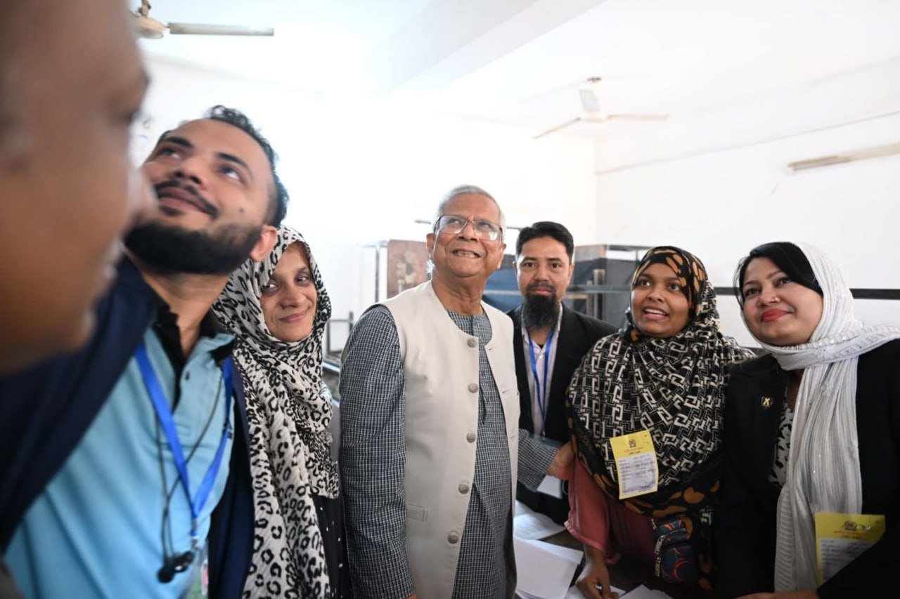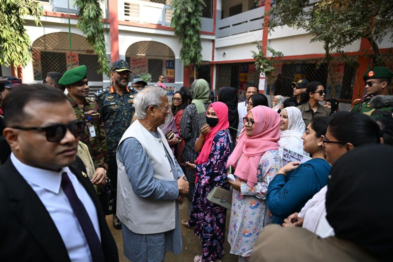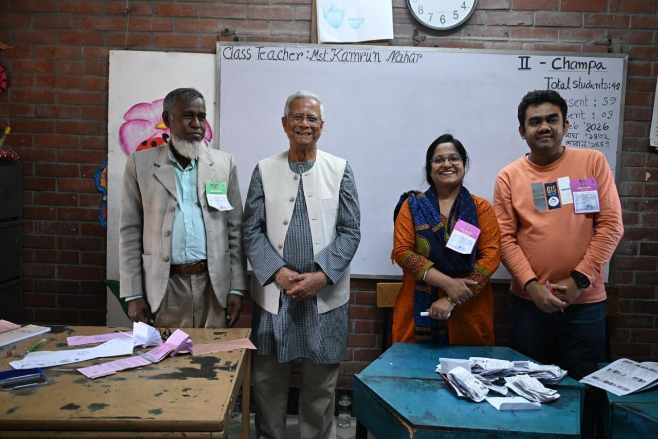 ဘင်္ဂလားဒေ့ရှ်နိုင်ငံရဲ့ အဓိကအကြံပေးပုဂ္ဂိုလ် (ယာယီအစိုးရအကြီးအကဲ) ပရော်ဖက်ဆာမိုဟာမက်ယူနွတ်စ်ဟာ ဒီနေ့မနက်ပိုင်းက ဒါကာမြို့ရှိ Gulshan Model School & College မဲရုံမှာ ကိုယ်တိုင်မဲပေးခဲ့ပါတယ်။