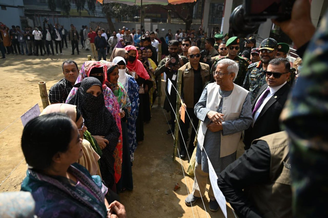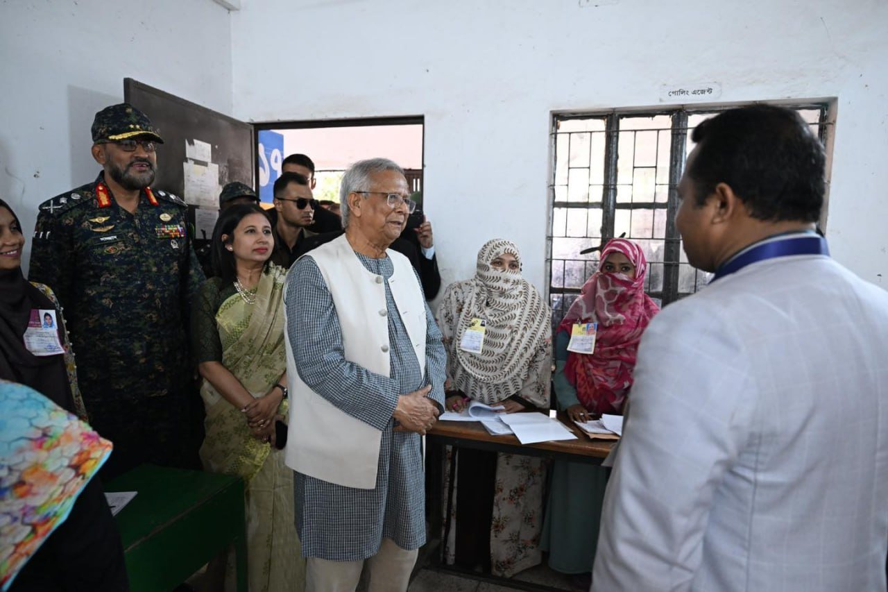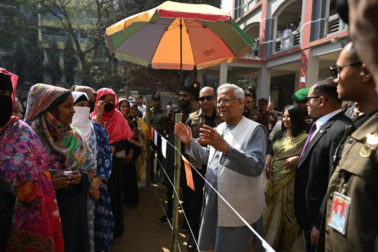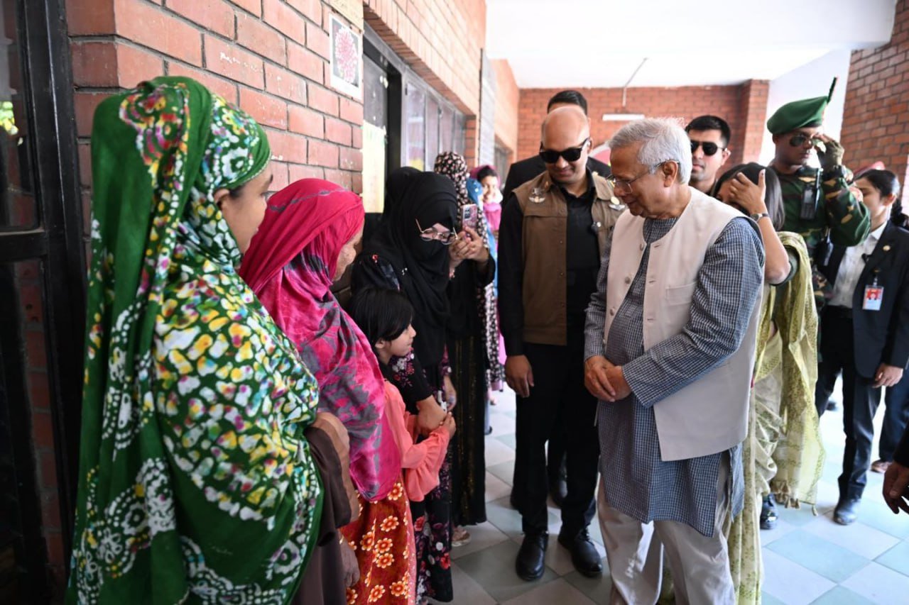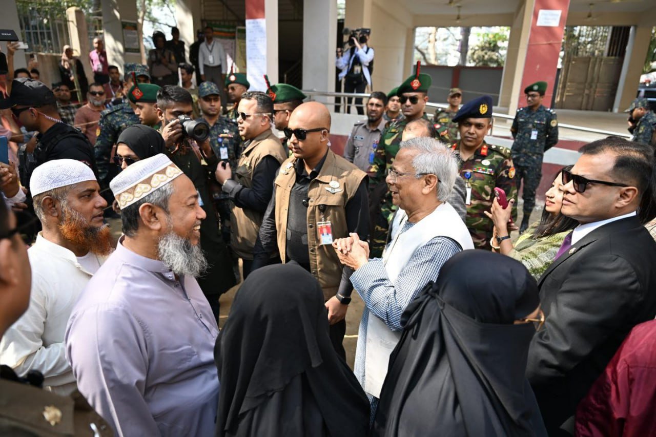 ဘင်္ဂလားဒေ့ရှ်နိုင်ငံရဲ့ အဓိကအကြံပေးပုဂ္ဂိုလ် (ယာယီအစိုးရအကြီးအကဲ) ပရော်ဖက်ဆာမိုဟာမက်ယူနွတ်စ်ဟာ ဒီနေ့မနက်ပိုင်းက ဒါကာမြို့ရှိ Gulshan Model School & College မဲရုံမှာ ကိုယ်တိုင်မဲပေးခဲ့ပါတယ်။