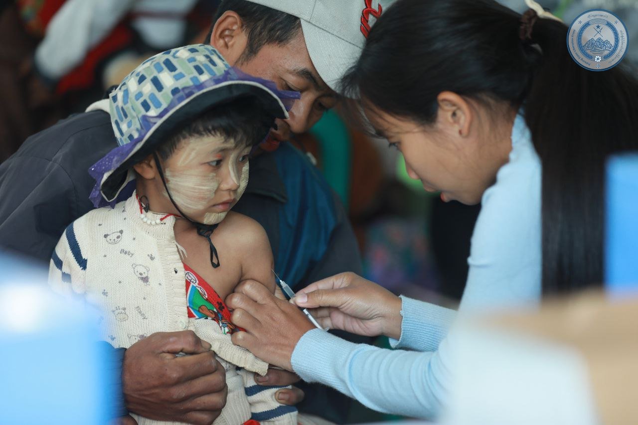 တအာင်းပြည်၊ မိုင်းငေါ့မြို့မှာ အသက် ၅ နှစ်အောက်ကလေးငယ် ၁၁၉ ဦးနဲ့ ကိုယ်ဝန်ဆောင်မိခင် ၆ ဦးကို တအာင်းပြည်ကျန်းမာရေးကောင်စီ (THC) ကနေ ကာကွယ်ဆေးတွေ ထိုးနှံပေးခဲ့ပါတယ်။