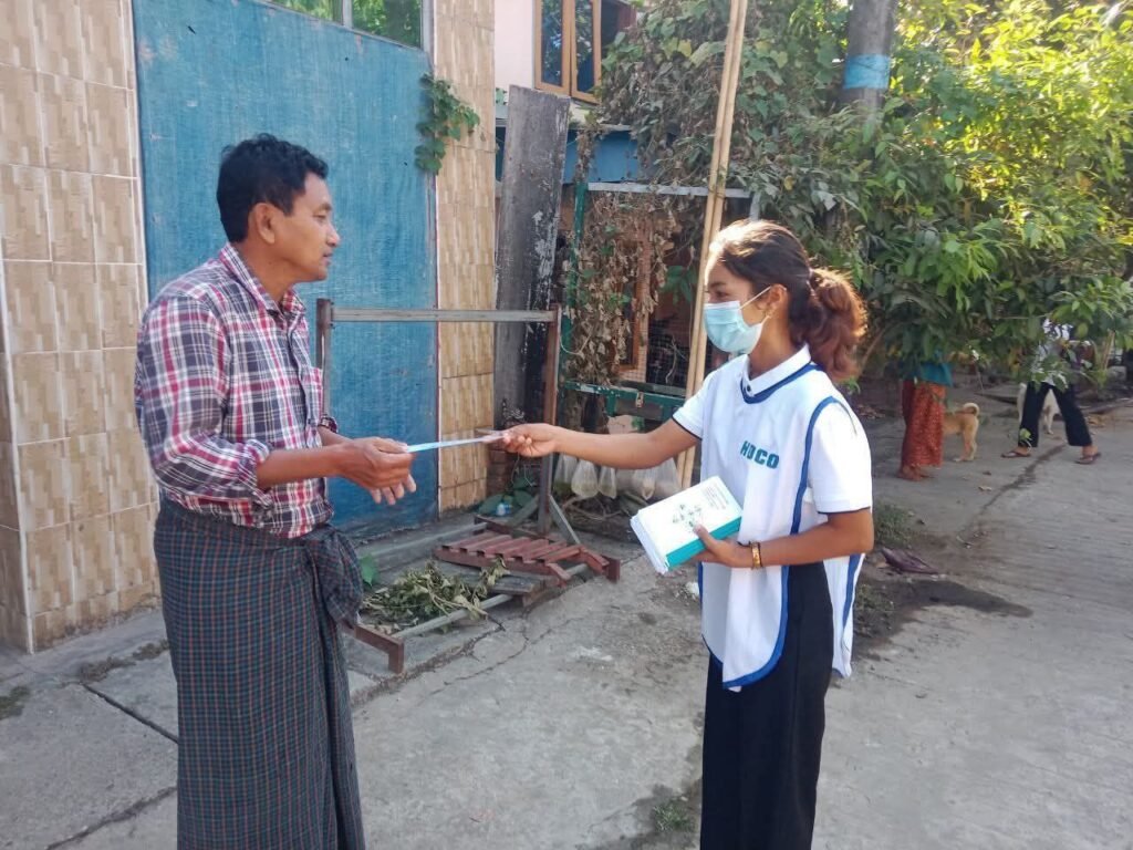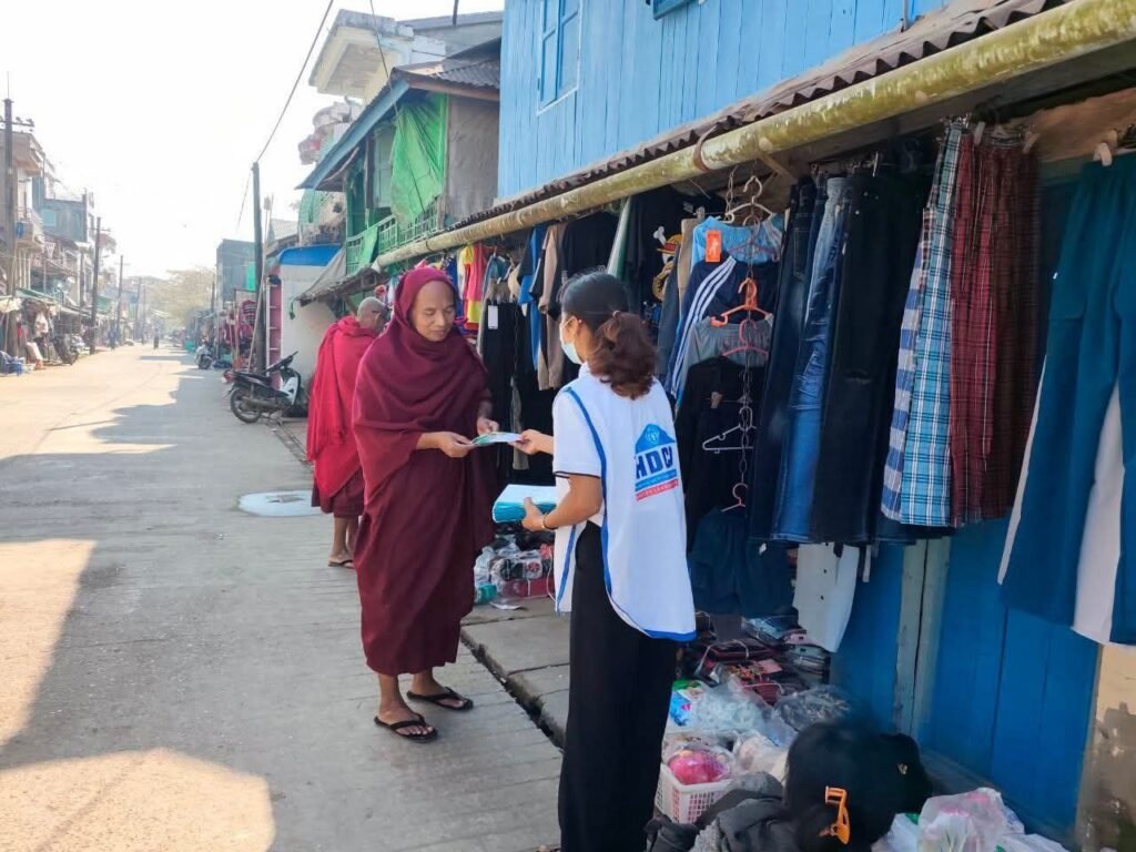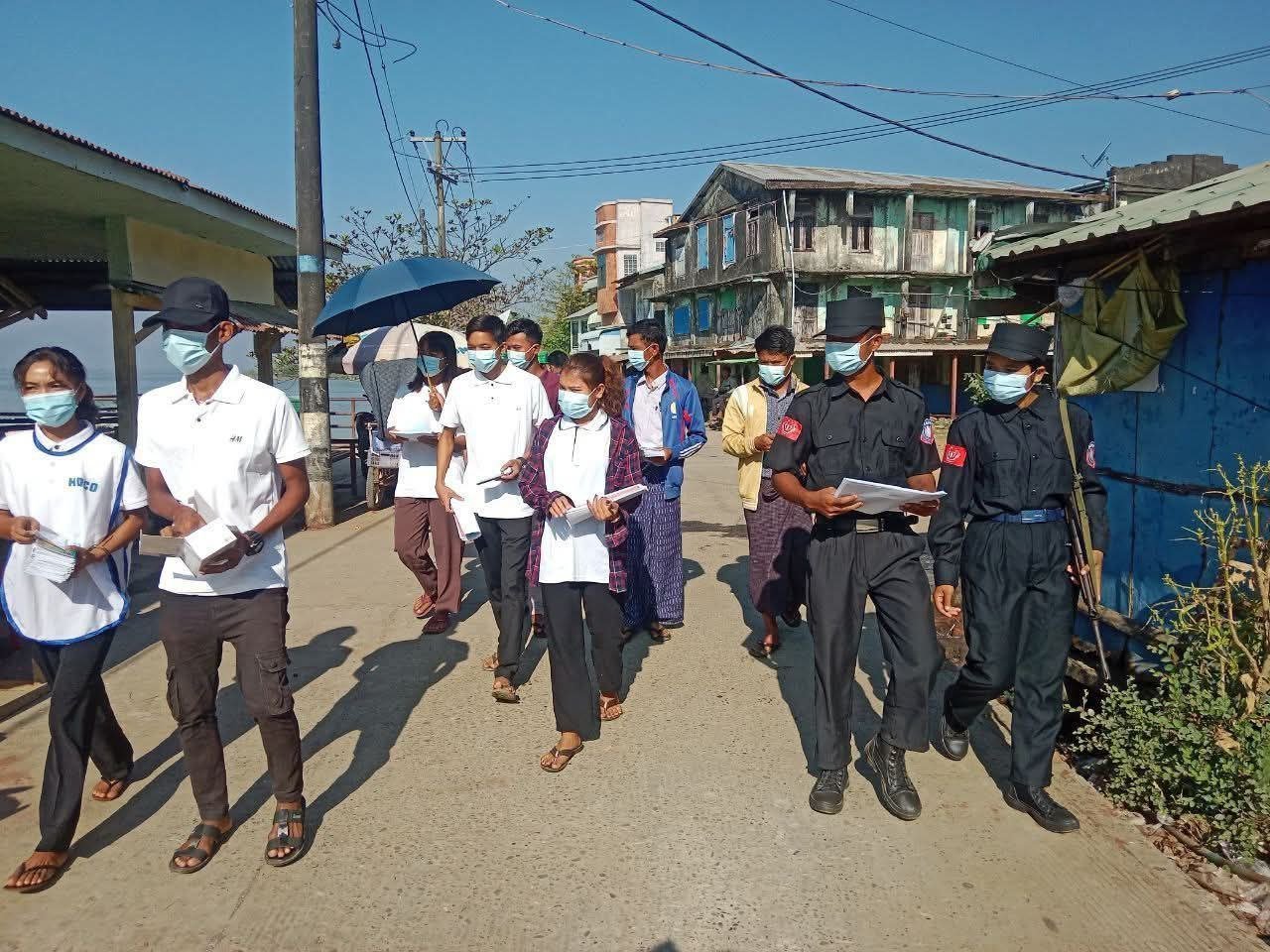 ပြီးခဲ့တဲ့ဇန်နဝါရီလ ၁၀ ရက်နေ့ကစပြီး စစ်တွေခရိုင်အတွင်းက လူစည်ကားရာ လမ်းမတွေ၊ဈေးတွေ၊ ကားဂိတ်တွေနဲ့ လမ်းဆုံလမ်းခွတွေမှာ အသိပညာပေးဗီနိုင်းတွေ ချိတ်ဆွဲတာနဲ့ လက်ကမ်းစာစောင် ဖြန့်ဝေတာတွေကို ပူးပေါင်းလုပ်ဆောင်ခဲ့ကြတာပါ။