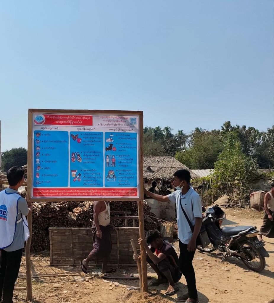အာရက္ခပြည်၊ စစ်တွေခရိုင်အတွင်းမှာ နီပါးဗိုင်းရပ်စ် (Nipah Virus) ကြိုတင်ကာကွယ်နိုင်ဖို့အတွက် အာရက္ခပြည်သူ့ကျန်းမာရေးဌာနနဲ့ ပူးပေါင်းအဖွဲ့တွေက အသိပညာပေးလုပ်ငန်းတွေကို အရှိန်အဟုန်နဲ့ လုပ်ဆောင်နေကြပါတယ်။