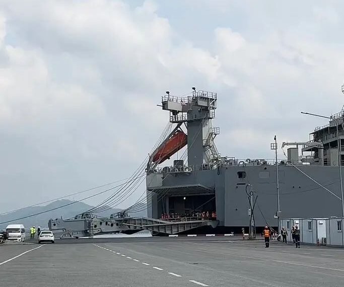 လက်ရှိမှာတော့ သင်္ဘောပေါ်မှာပါလာတဲ့ စစ်လက်နက်ပစ္စည်းတွေကို စတင်ချပေးနေပြီလို့ Army Military Force ရဲ့ ထုတ်ပြန်ချက်အရ သိရပါတယ်။