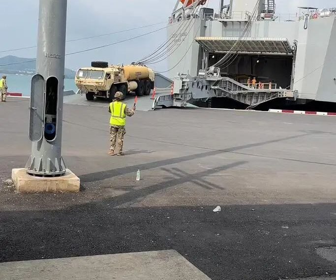 ဒီပစ္စည်းတွေကို ဆိပ်ကမ်းကနေတဆင့် ကုန်းပေါ်ကို လွှဲပြောင်းပို့ဆောင်တာတွေကို အမေရိကန်စစ်တပ်ဘက်က ဒီနေ့အထိ ဆက်လက်လုပ်ဆောင်နေတာပါ။