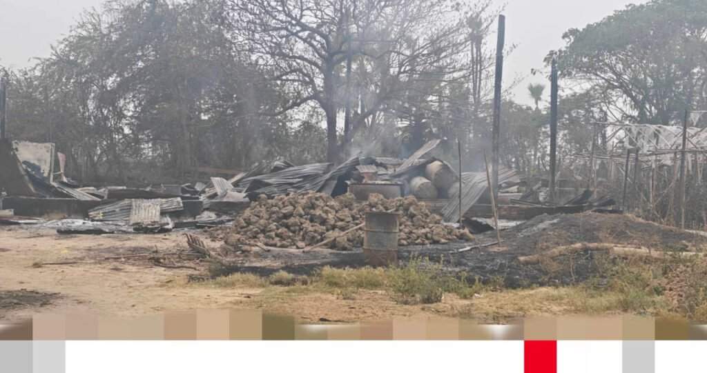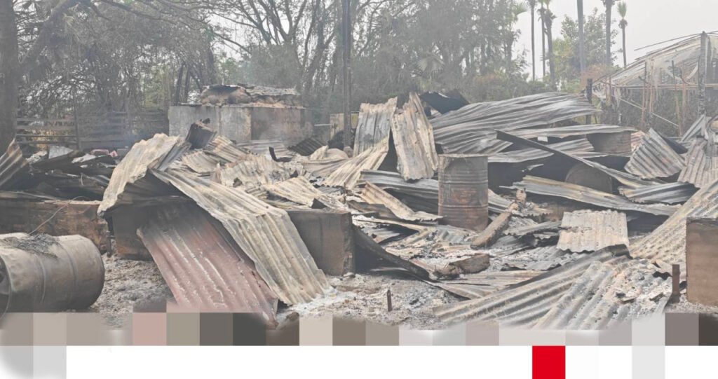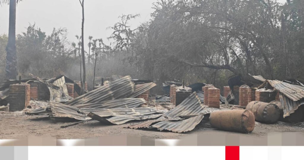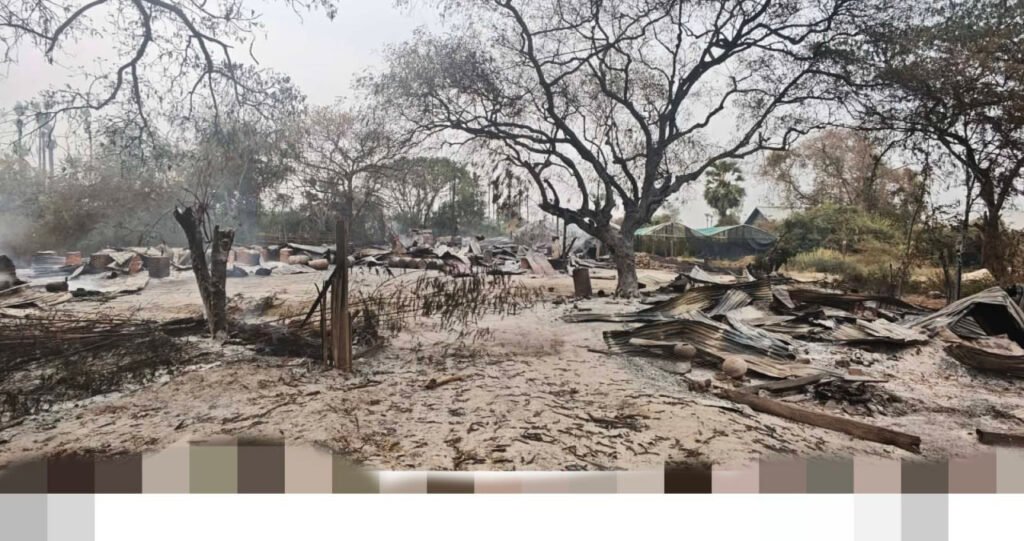 ​ခင်ဦးမြို့အနောက်ဘက်ရှိ နေအိမ်၊ ဆိုင်ခန်းနဲ့​ဆန်စက်တွေကို စစ်ကော်မရှင်တပ်က မီးရှို့