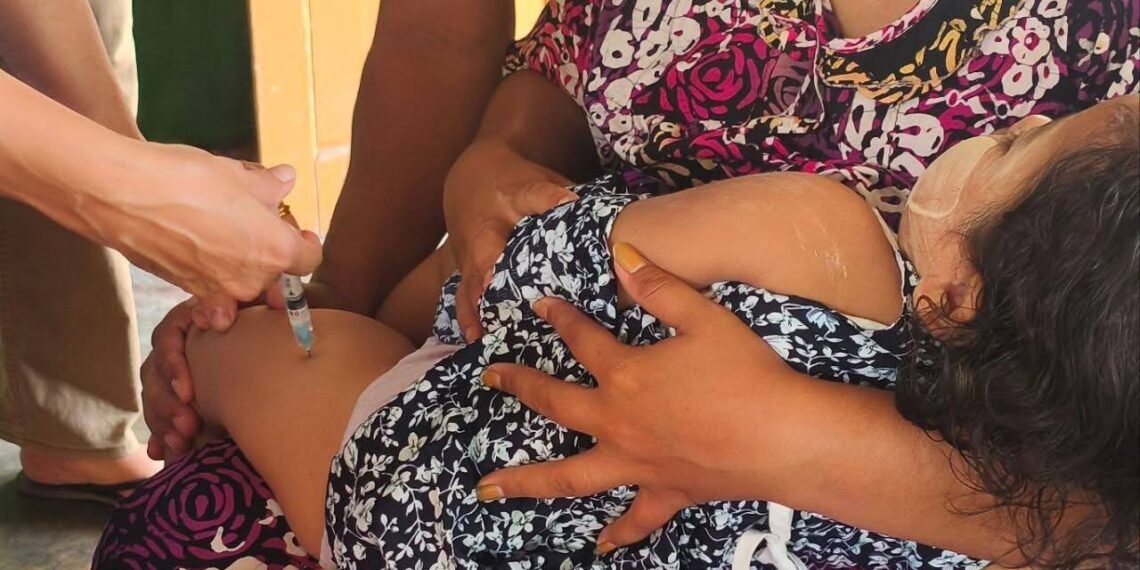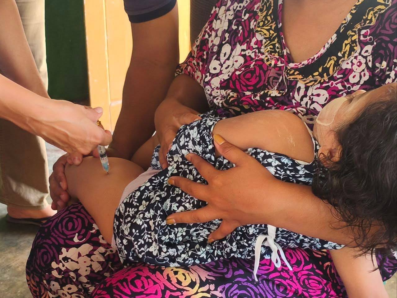 အာရက္ခပြည်သူ့ကျန်းမာရေးဌာနမှ နှစ်လနဲ့တနှစ်ကြားကလေးငယ်တွေ၊ တနှစ်နဲ့သုံးနှစ်ကြားကလေးငယ်တွေ၊ သုံးနှစ်နဲ့ငါးနှစ်ကြားကလေးငယ်တွေကို တတိယအကြိမ်ကာကွယ်ဆေးထိုးပေးခဲ့တာပါ။